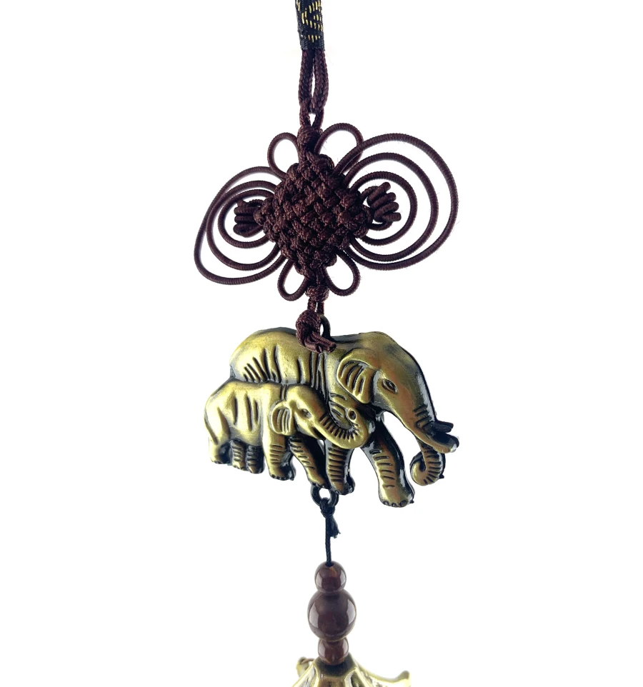 Каждая деталь этой подвески выполнена вручную с использованием высококачественных материалов. Слоны, узелок счастья и другие элементы излучают тепло ручной работы и заботы о деталях.
