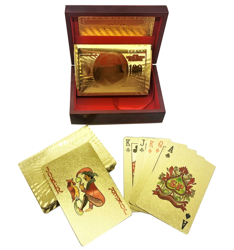 Игральные карты "Золотая Серия" в шкатулке. Этот элегантный комплект карт размером 110х80х40 мм. предоставит вам высокое качество игры и добавит нотку роскоши к вашим развлечениям.