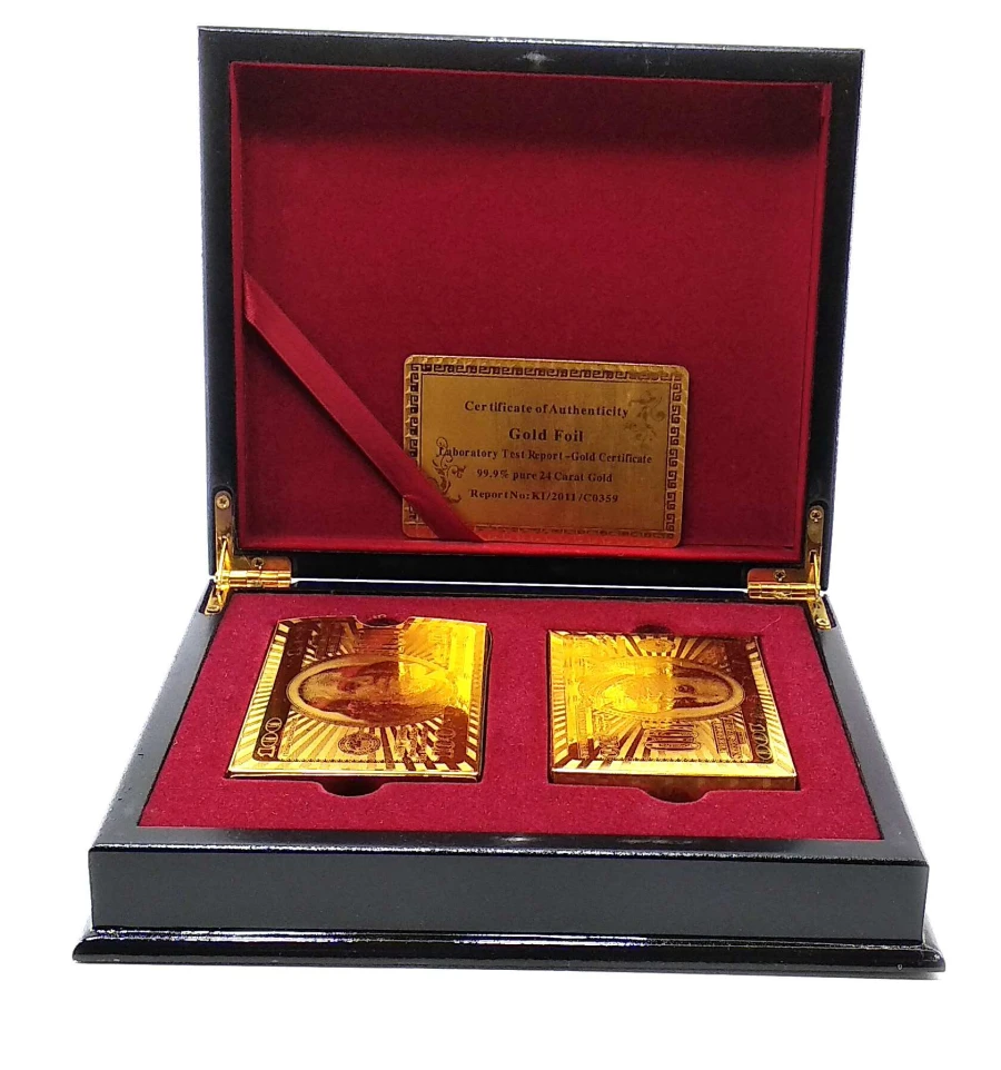 Карты игральные пластиковые позолоченые в шкатулке (2 колоды) (20×17×4.5 см)