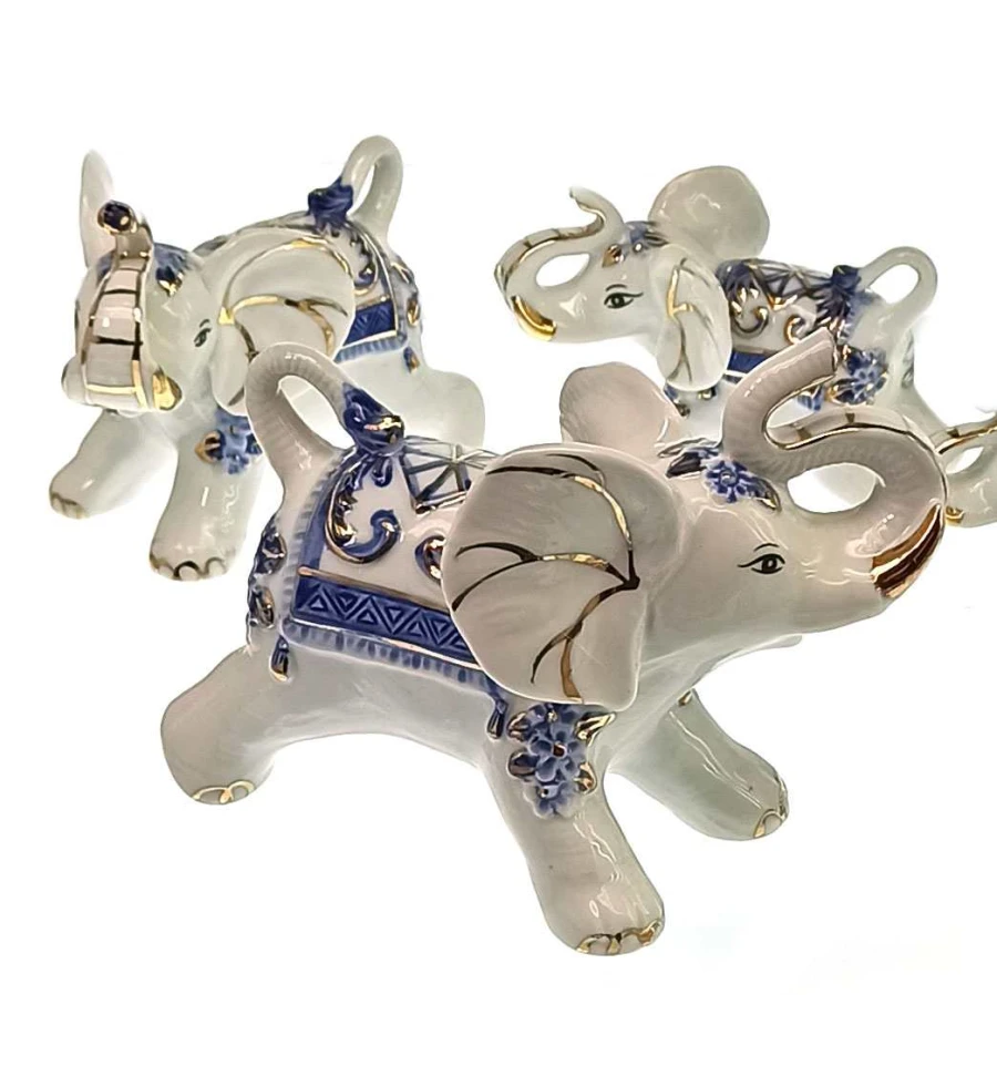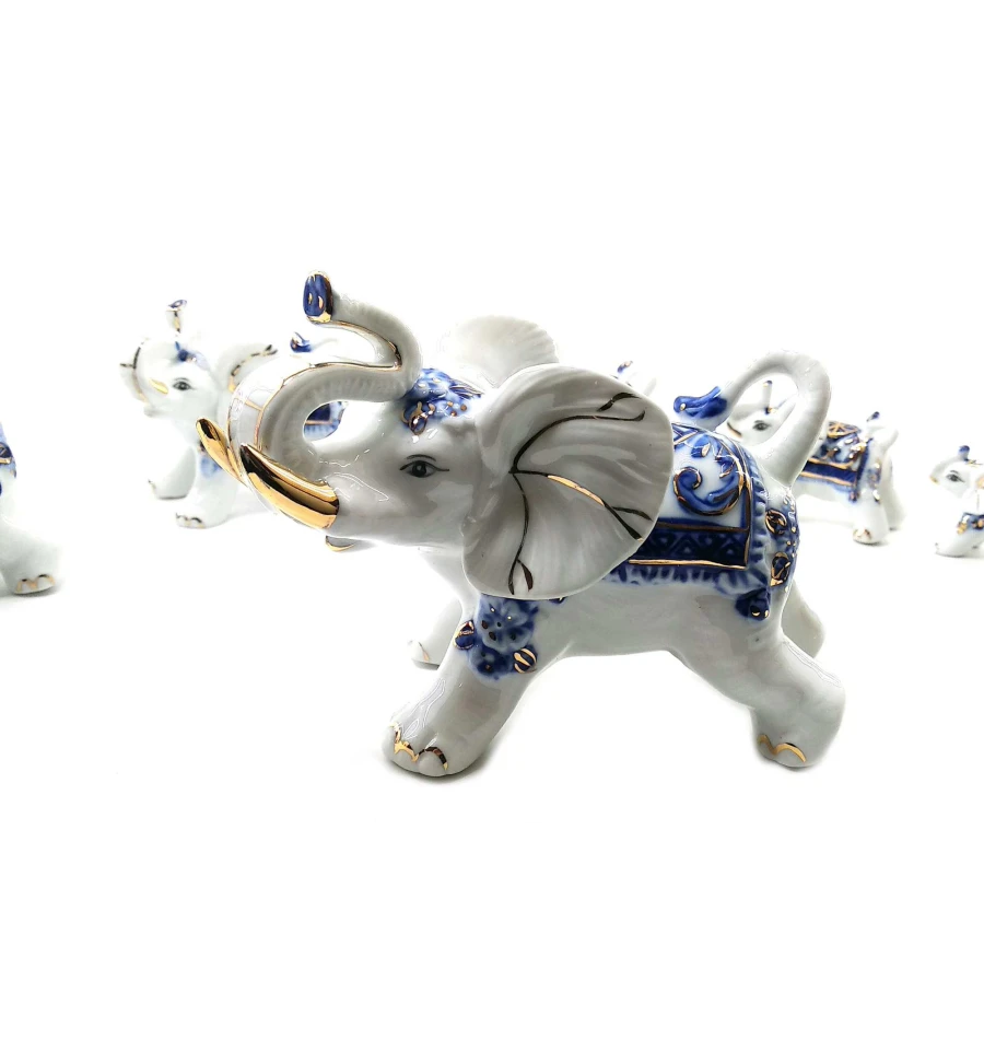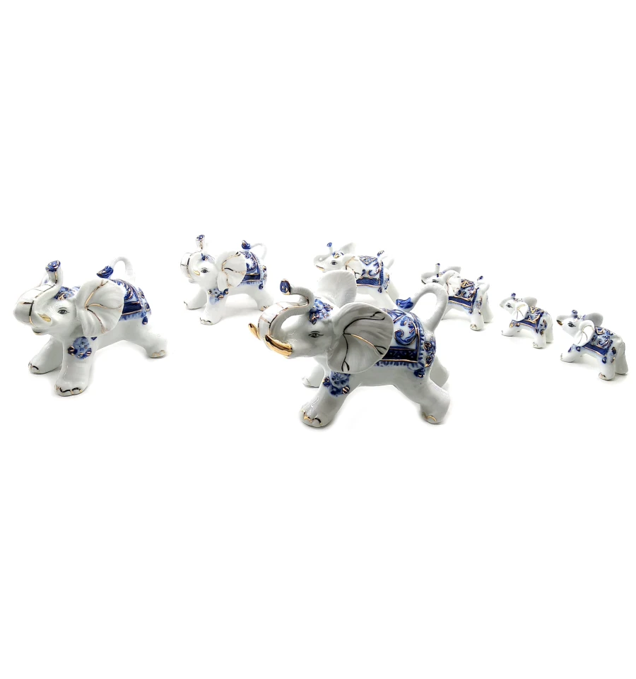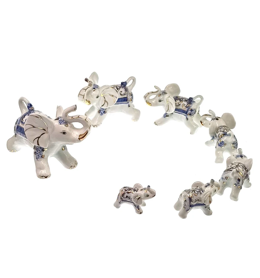 Слоны фарфоровые набор 7 шт. (Большой 12×9×7 см маленький 4.5×3×3 см)