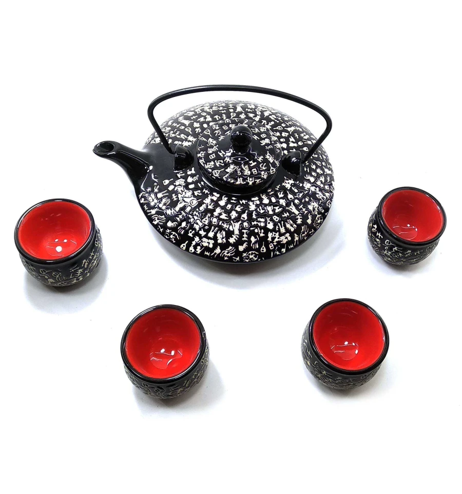 Сервиз керамический (чайник 900мл, h-7см, d-19см;4 чашки, h-5,5см, d-5,5см)(35х20,5х6,5 см)A