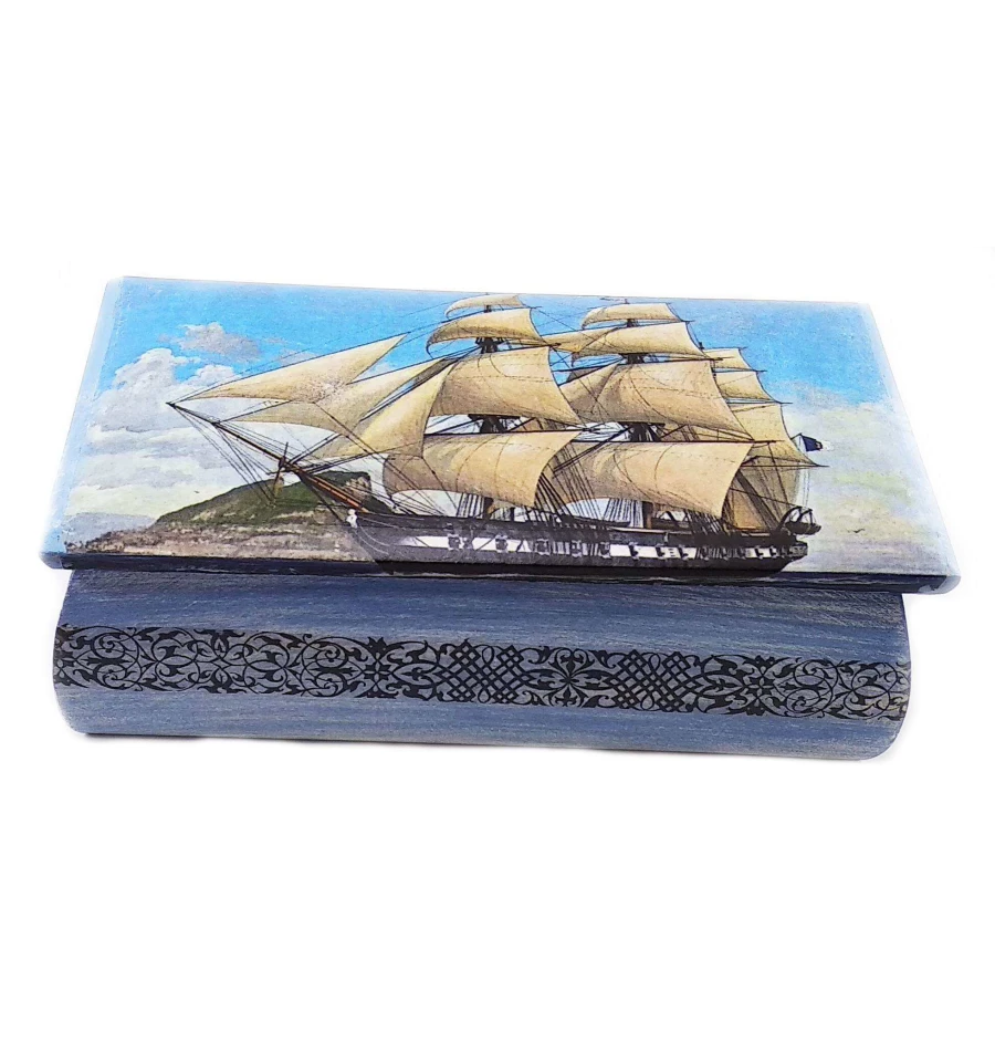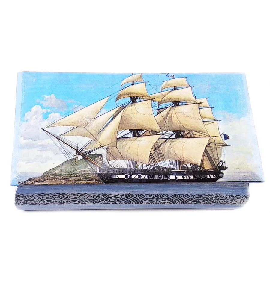 Шкатулка «Парусник» массив дерева (21.5×11.5×7 см)
