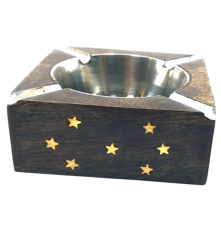 Пепельница деревянная квадратная «Звезды» (10×10×4 см)