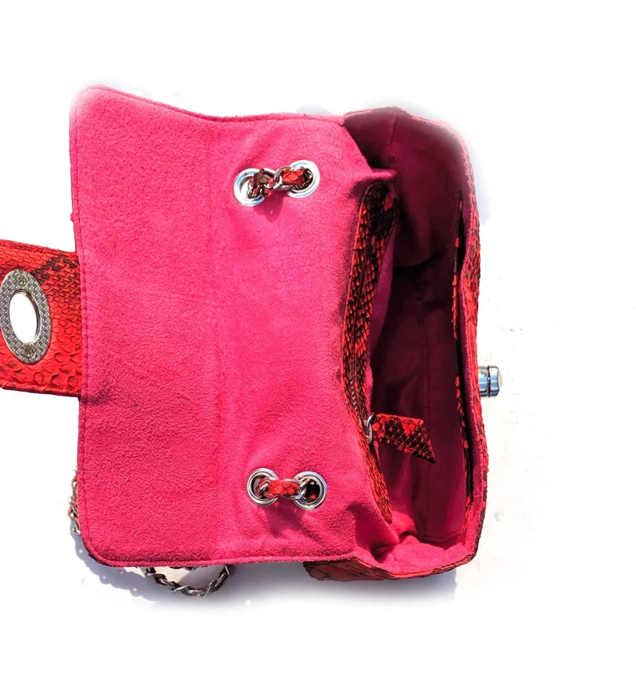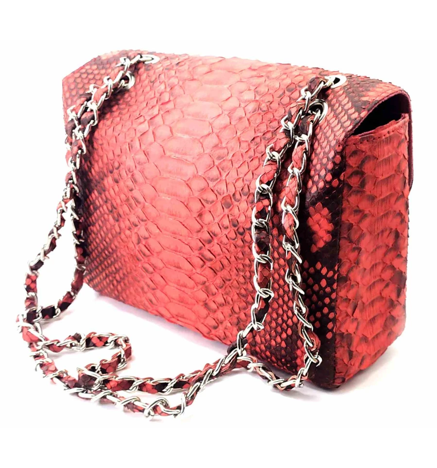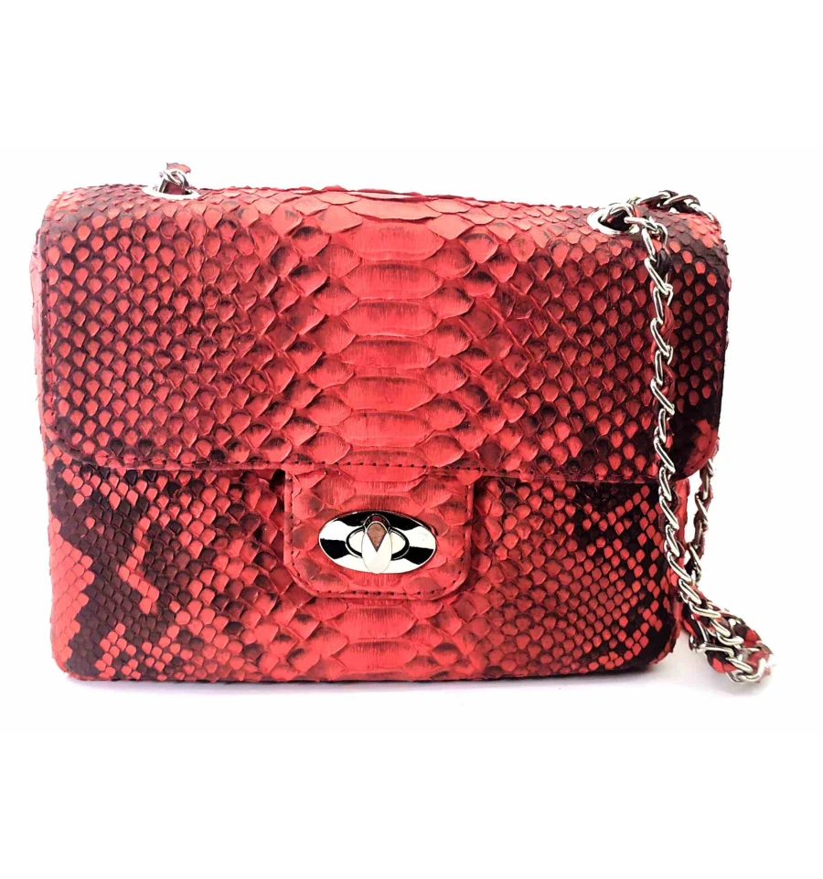 Сумочка из кожи питона оранжевая (20×14×8 см)