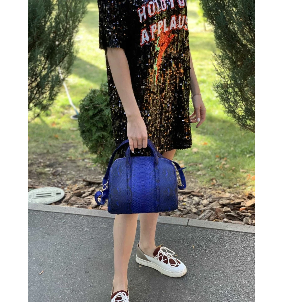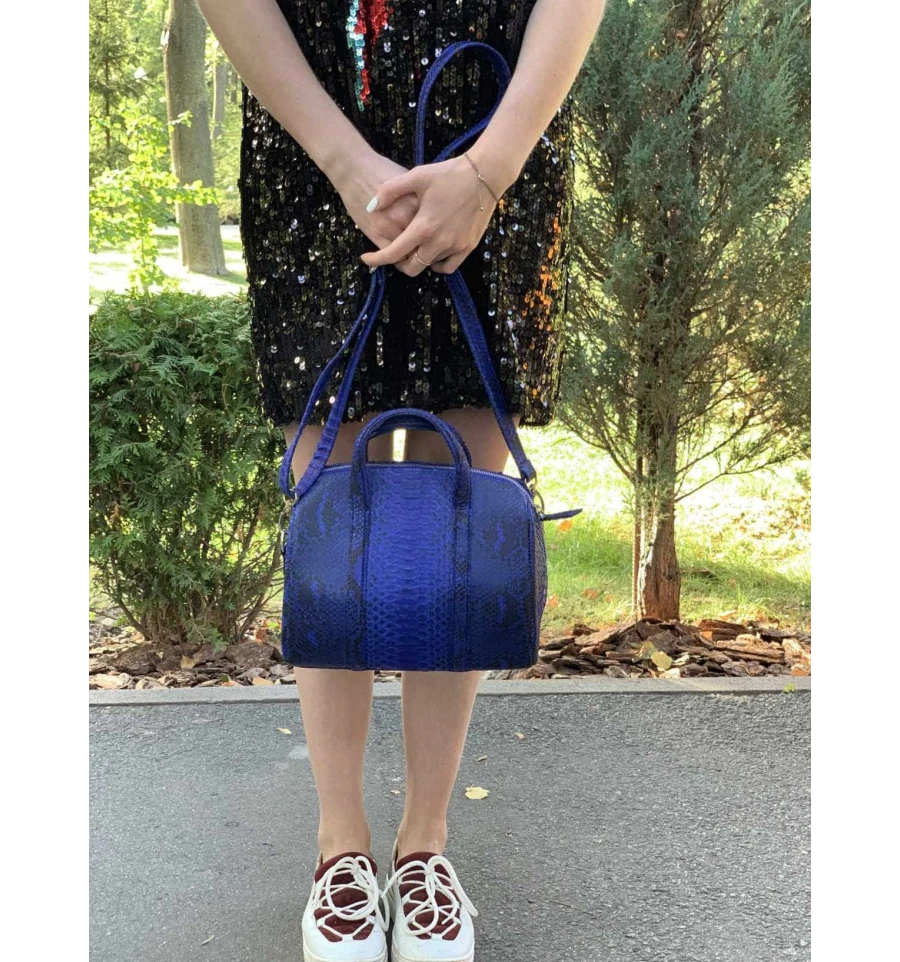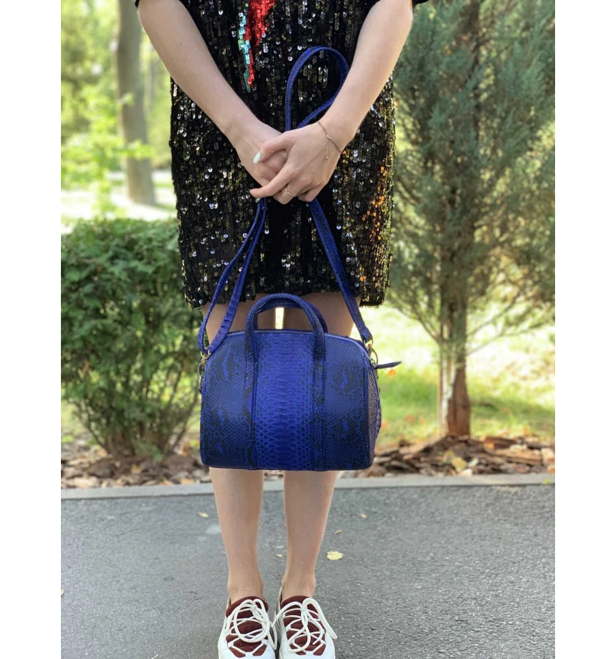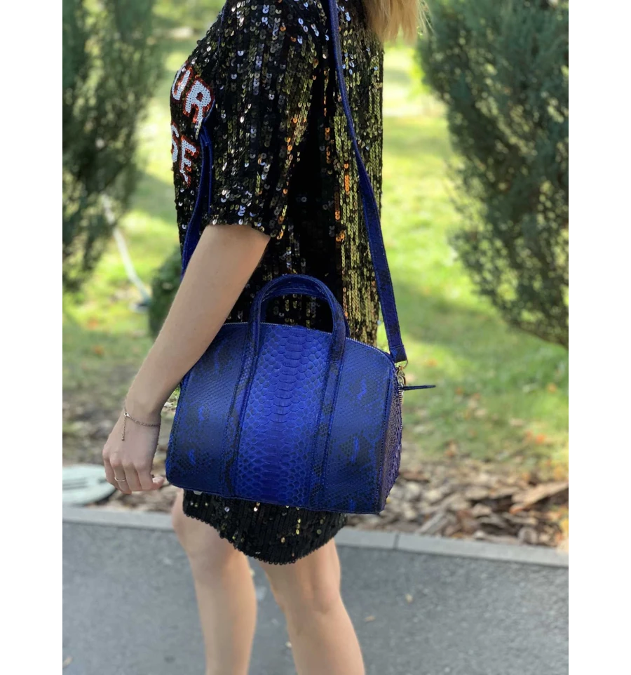 Сумочка из кожи питона синяя (26×22×14 см)