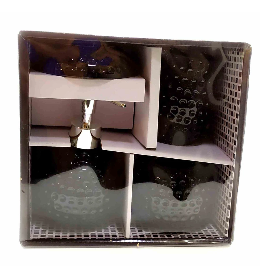 Керамический набор для ванной в черном цвете в виде мяча для игры в гольф - это идеальное решение для придания вашей ванной комнате стиля и функциональности. Этот набор состоит из четырех предметов: Диспенсер для жидкости: высотой 160 мм и диаметром 92 мм. С вместительностью 380 мл, он подходит для различных жидких продуктов, будь то жидкое мыло, гель для умывания или шампунь. Его элегантный дизайн сделает вашу ванную комнату еще привлекательнее. Органайзер для зубной гигиены: Высотой 85 мм и диаметром 95 мм, он идеально подходит для хранения зубных щеток, пасты и других мелочей. Он помогает поддерживать порядок и организовать пространство. Стакан: Этот стильный стакан высотой 95 мм и шириной 80 мм отлично подходит для хранения зубных щеток или просто для полоскания ротовой полости. Его дизайн соответствует остальным предметам набора, создавая единый стиль. Мыльница: диамнтром170 мм и высотой 20 мм, она идеально подходит для размещения мыла. Ее дизайн и цвет сочетаются с остальными предметами набора. Этот керамический набор не только придаст вашей ванной комнате изысканный вид, но и сделает ее более организованной и функциональной. Он также может стать прекрасным подарком для ваших близких или друзей, добавляя нотку красоты и практичности в их повседневную жизнь.