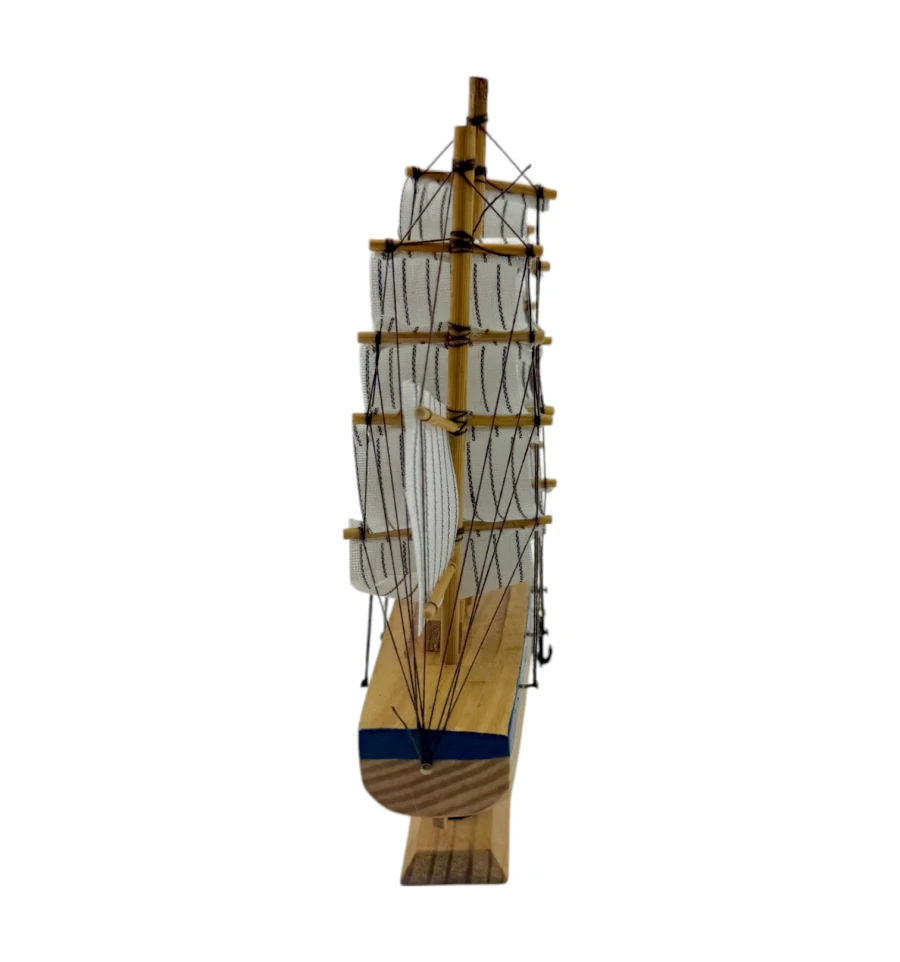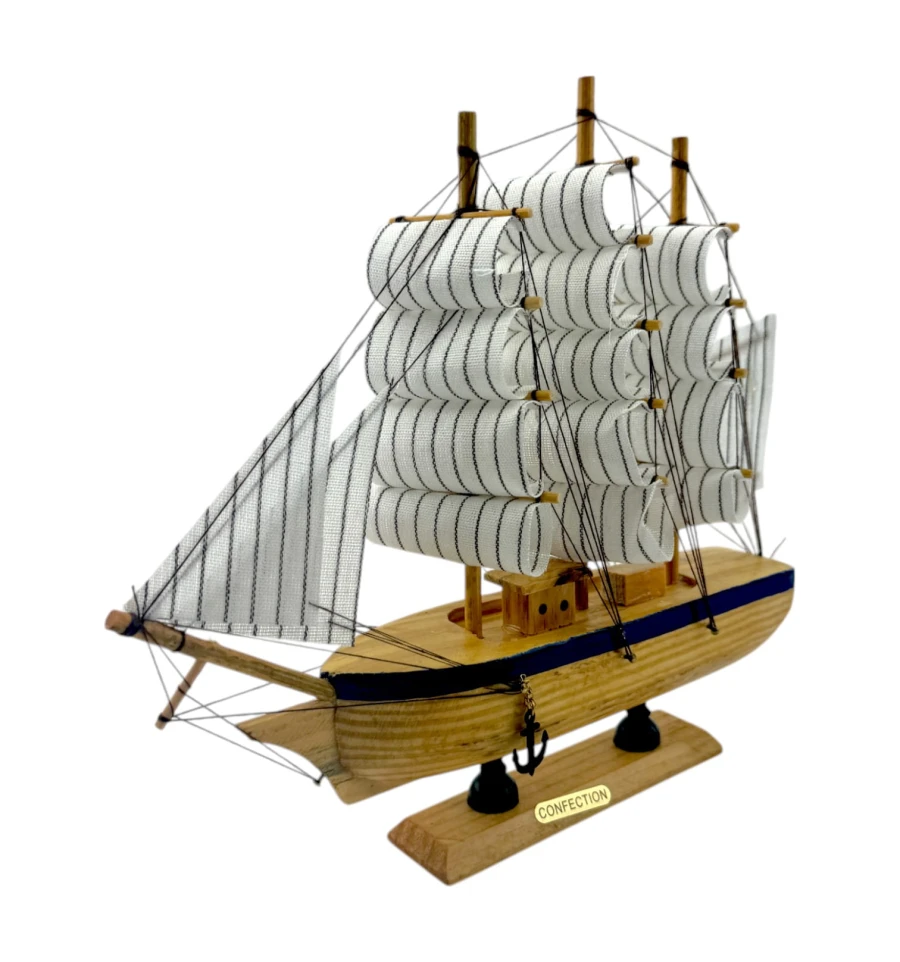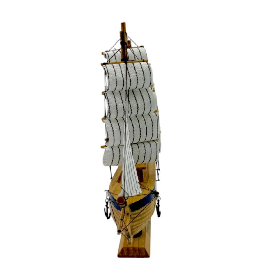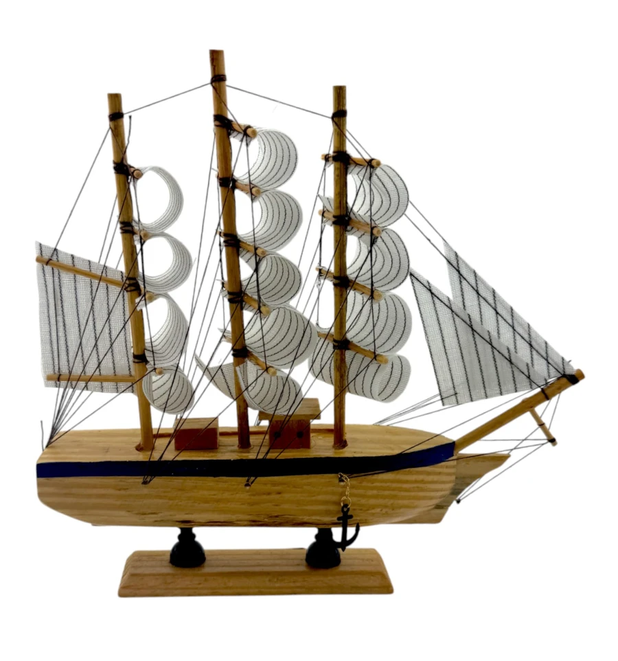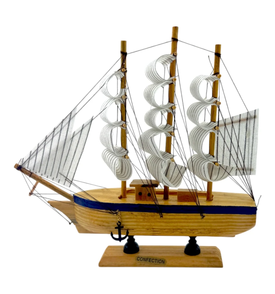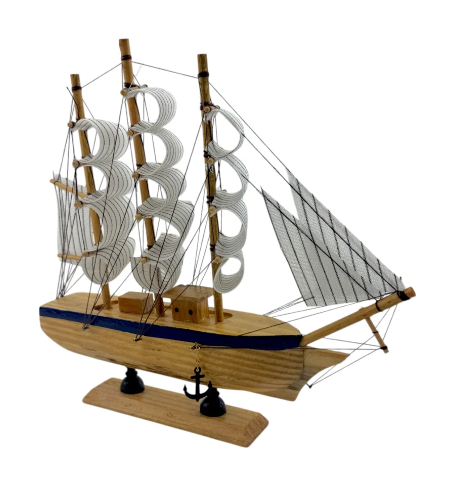 Деревянный парусник на подставке. Этот элегантный парусник - настоящий символ свободы и мечты о далеких морских путешествиях. Его деревянный корпус с синей полосой, со светлыми парусами призывает к новым горизонтам и приключениям. Парусник на подставке станет не только изысканным элементом вашего интерьера, но и напоминанием о бескрайних океанах и незабываемых моментах. Его компактные размеры делают его идеальным для размещения на столе, полке или в другом уголке вашего дома. Два якоря придают этой композиции дополнительный морской шарм и символизируют стабильность и верность своим идеалам. Этот парусник также может стать замечательным подарком для всех, кто разделяет страсть к морским темам и мечтает о приключениях на широких водах. Он символизирует свободу, мечты и бесконечные возможности. Погрузитесь в мир морской романтики с нашим парусником. Он будет напоминать вам о великих путешествиях и дарить вдохновение каждый день.