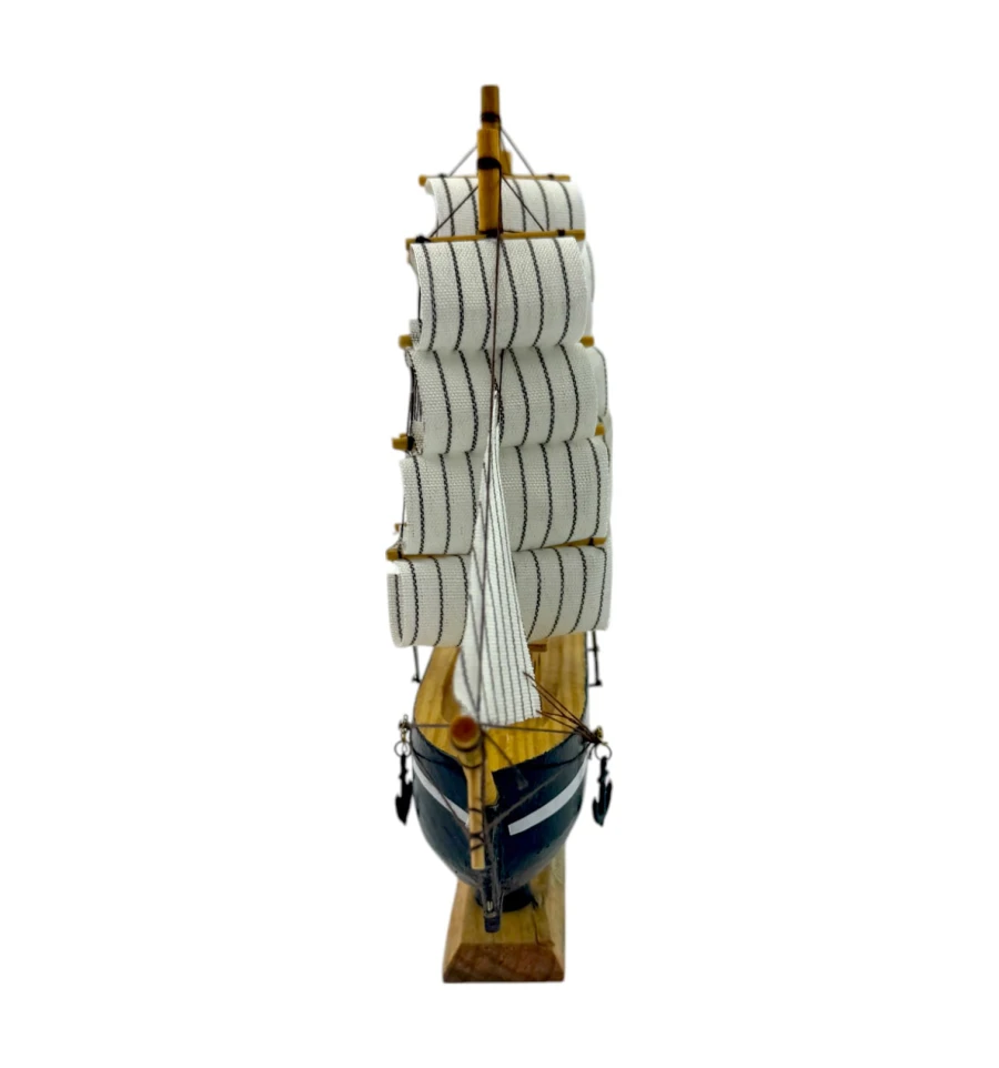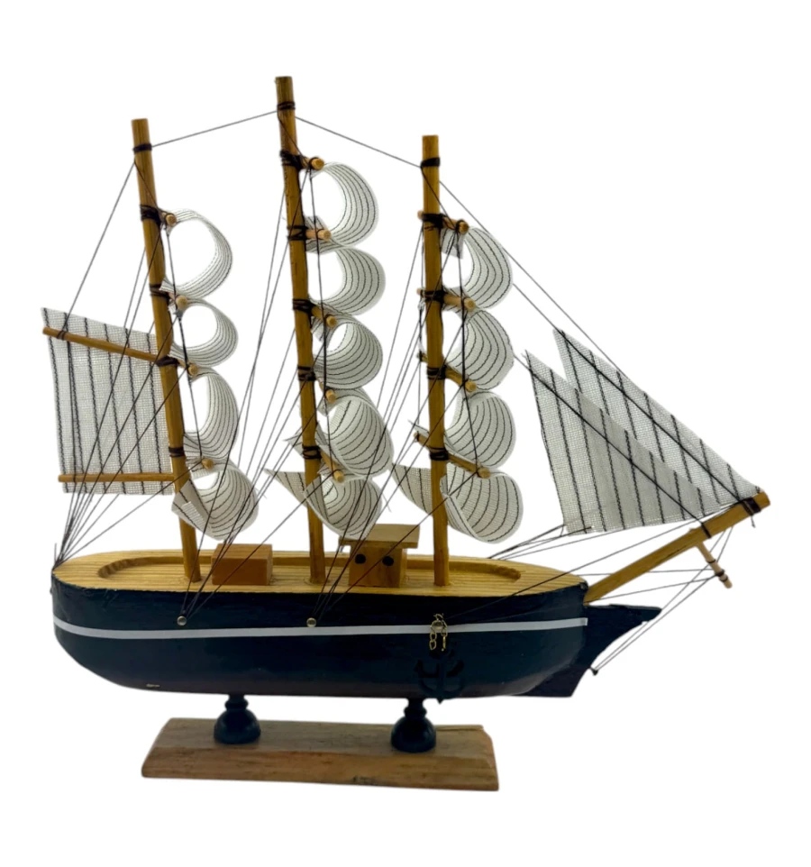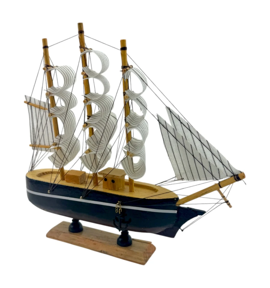 Деревянный парусник на подставке. Этот элегантный парусник - настоящий символ свободы и мечты о далеких морских путешествиях. Его деревянный корпус с синей полосой, со светлыми парусами призывает к новым горизонтам и приключениям. Парусник на подставке станет не только изысканным элементом вашего интерьера, но и напоминанием о бескрайних океанах и незабываемых моментах. Его компактные размеры делают его идеальным для размещения на столе, полке или в другом уголке вашего дома. Два якоря придают этой композиции дополнительный морской шарм и символизируют стабильность и верность своим идеалам. Этот парусник также может стать замечательным подарком для всех, кто разделяет страсть к морским темам и мечтает о приключениях на широких водах. Он символизирует свободу, мечты и бесконечные возможности. Погрузитесь в мир морской романтики с нашим парусником. Он будет напоминать вам о великих путешествиях и дарить вдохновение каждый день.