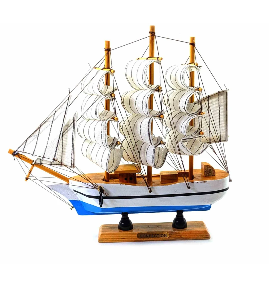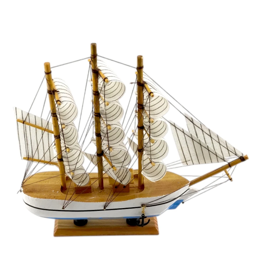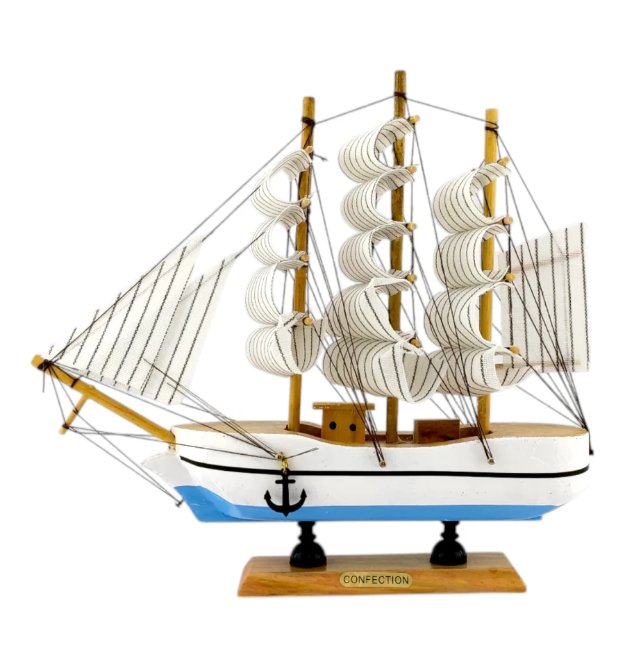 Деревянный парусник на подставке. Этот элегантный парусник - настоящий символ свободы и мечты о далеких морских путешествиях. Его деревянный корпус с синей полосой, со светлыми парусами призывает к новым горизонтам и приключениям. Парусник на подставке станет не только изысканным элементом вашего интерьера, но и напоминанием о бескрайних океанах и незабываемых моментах. Его компактные размеры делают его идеальным для размещения на столе, полке или в другом уголке вашего дома. Два якоря придают этой композиции дополнительный морской шарм и символизируют стабильность и верность своим идеалам. Этот парусник также может стать замечательным подарком для всех, кто разделяет страсть к морским темам и мечтает о приключениях на широких водах. Он символизирует свободу, мечты и бесконечные возможности. Погрузитесь в мир морской романтики с нашим парусником. Он будет напоминать вам о великих путешествиях и дарить вдохновение каждый день.