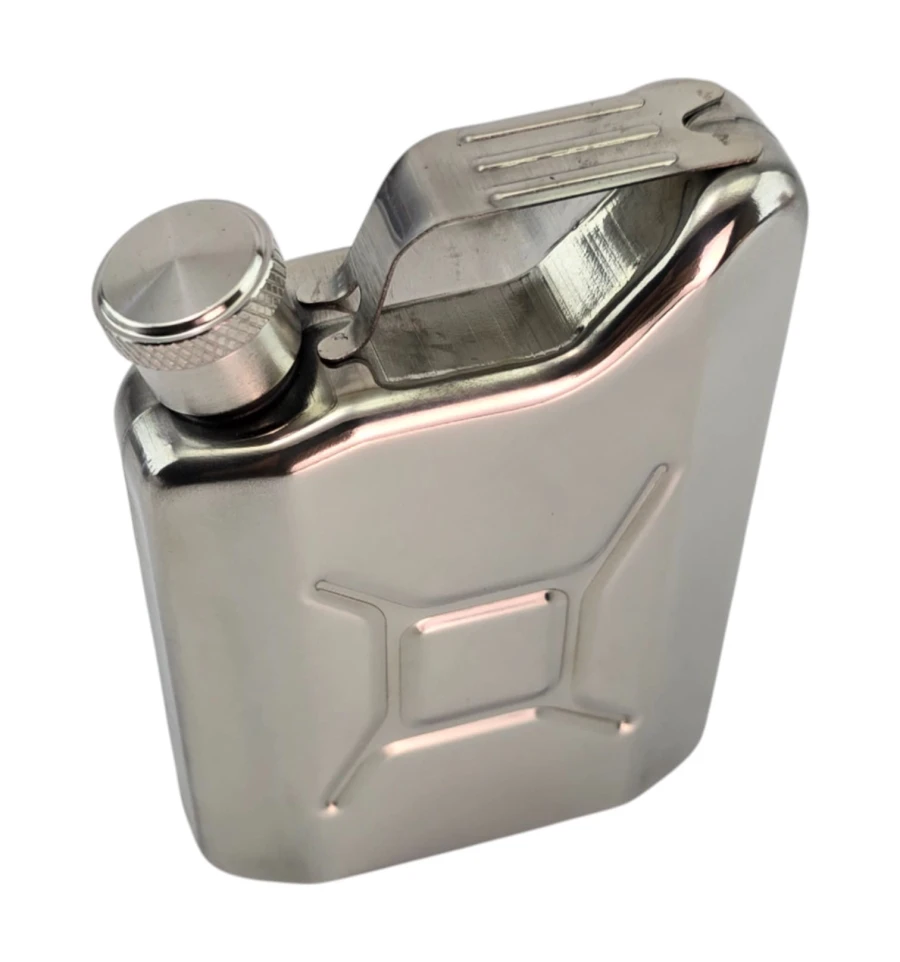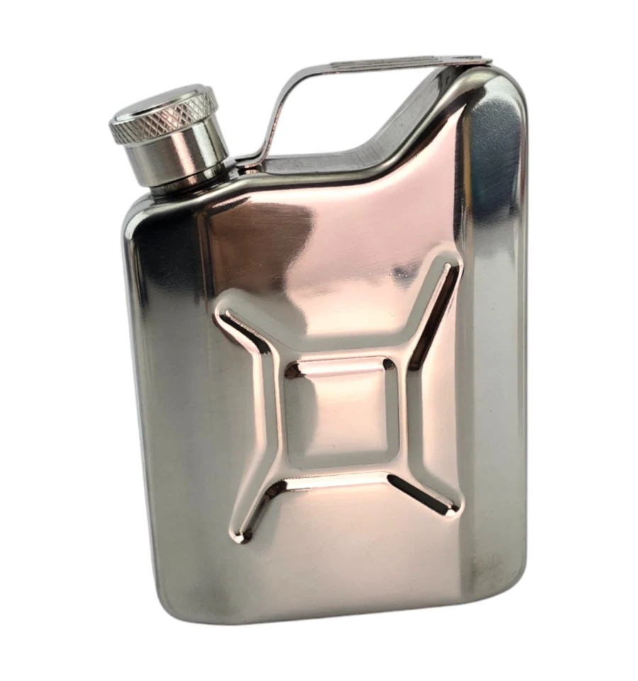 Компактная карманная фляга в форме канистры. Корпус из нержавеющей стали, удобная винтовая крышка. Легко помещается в карман, подходит для поездок, пикников, рыбалки и как лаконичный подарок. Рекомендуется для крепких напитков.