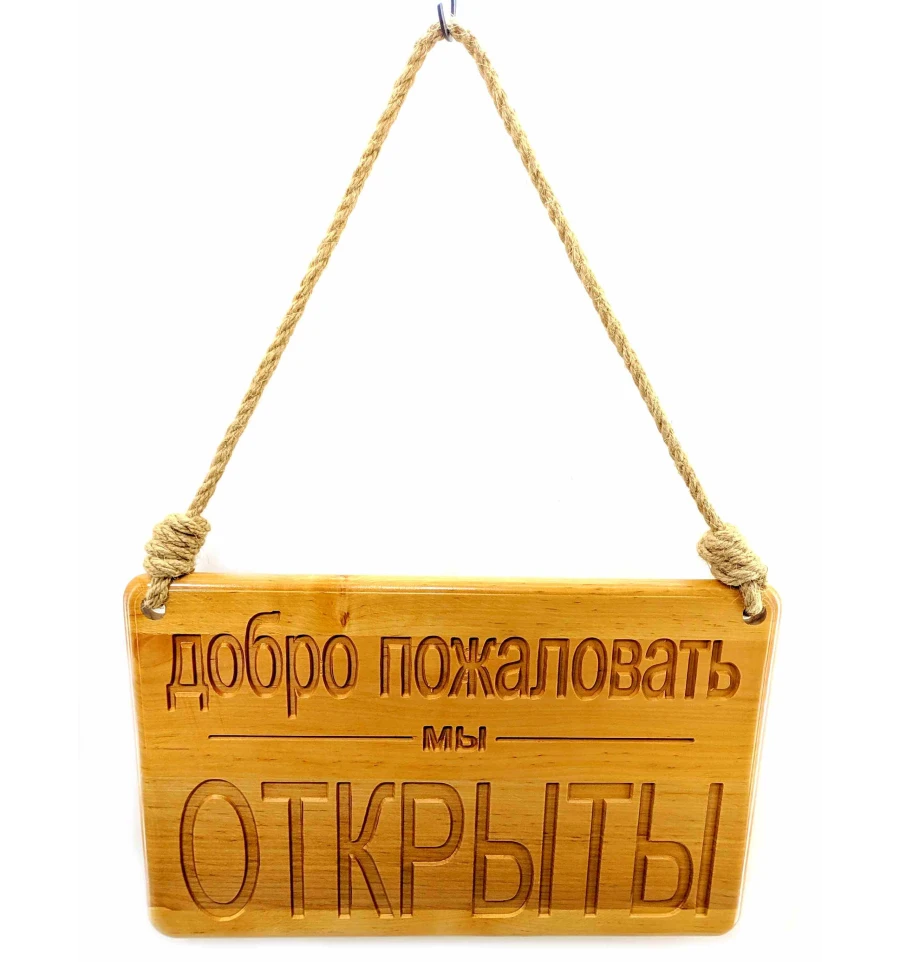 Табличка "Открыто-Закрыто" изготовлена из массива дерева и имеет резную отделку. Размеры таблички составляют 40х25х2 см. Она покрыта лаком, чтобы увеличить ее срок службы и сохранить ее внешний вид. Табличка имеет двустороннюю конструкцию, позволяя легко переключать между статусами "Открыто" и "Закрыто". В комплекте с табличкой идет пеньковая веревка для удобного крепления к дверной ручке или крючку. Эта табличка идеально подходит для использования в офисе, магазине или дома, чтобы указать на состояние двери.