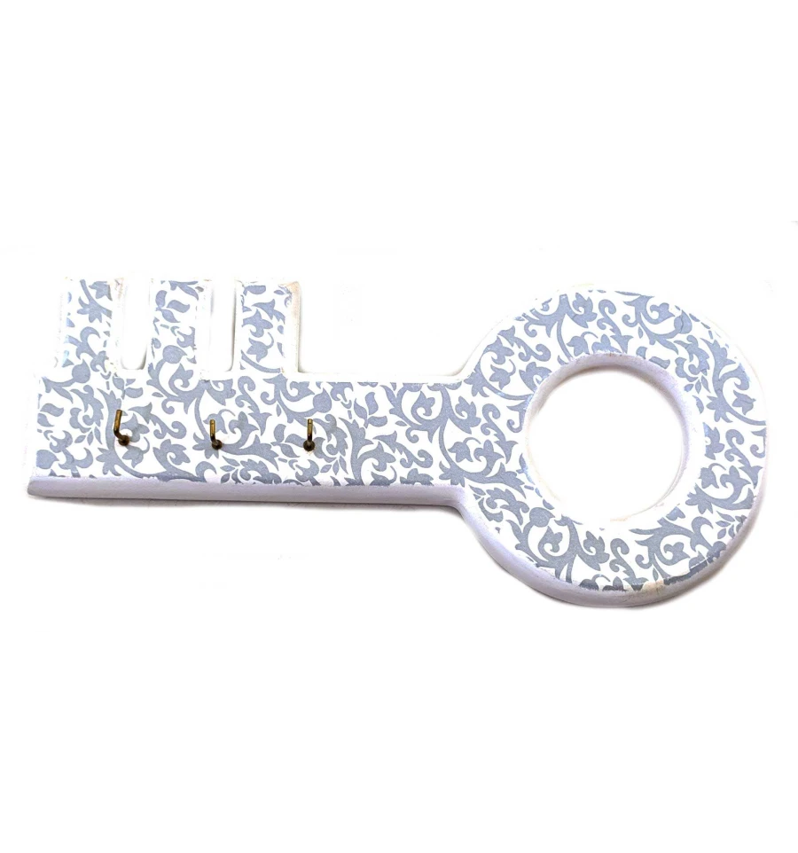 Ключница «Ключик» деревянная, белая расписная (27×12×2 см) из массива дерева