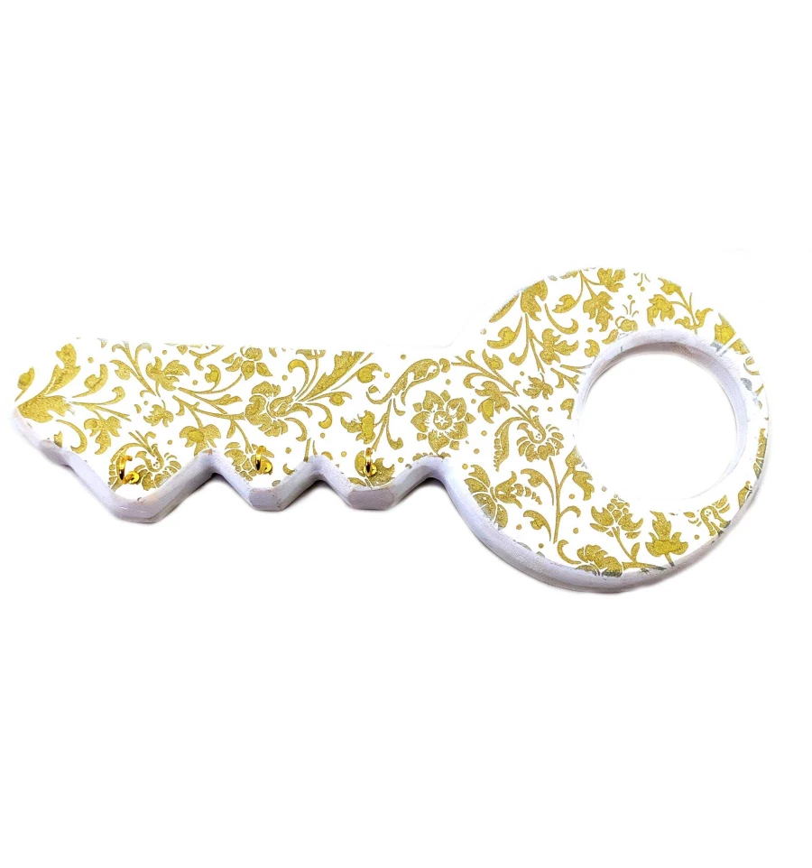 Ключница «Ключик» деревянная, белая расписная (27×12×2 см) из массива дерева