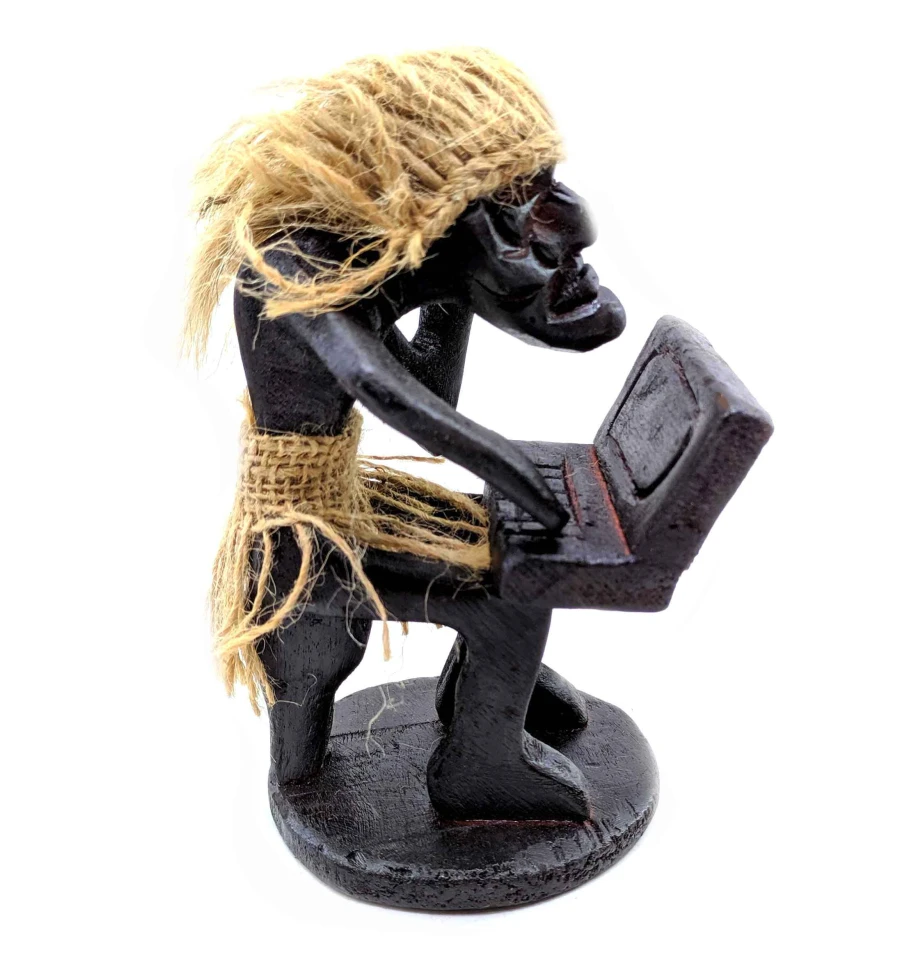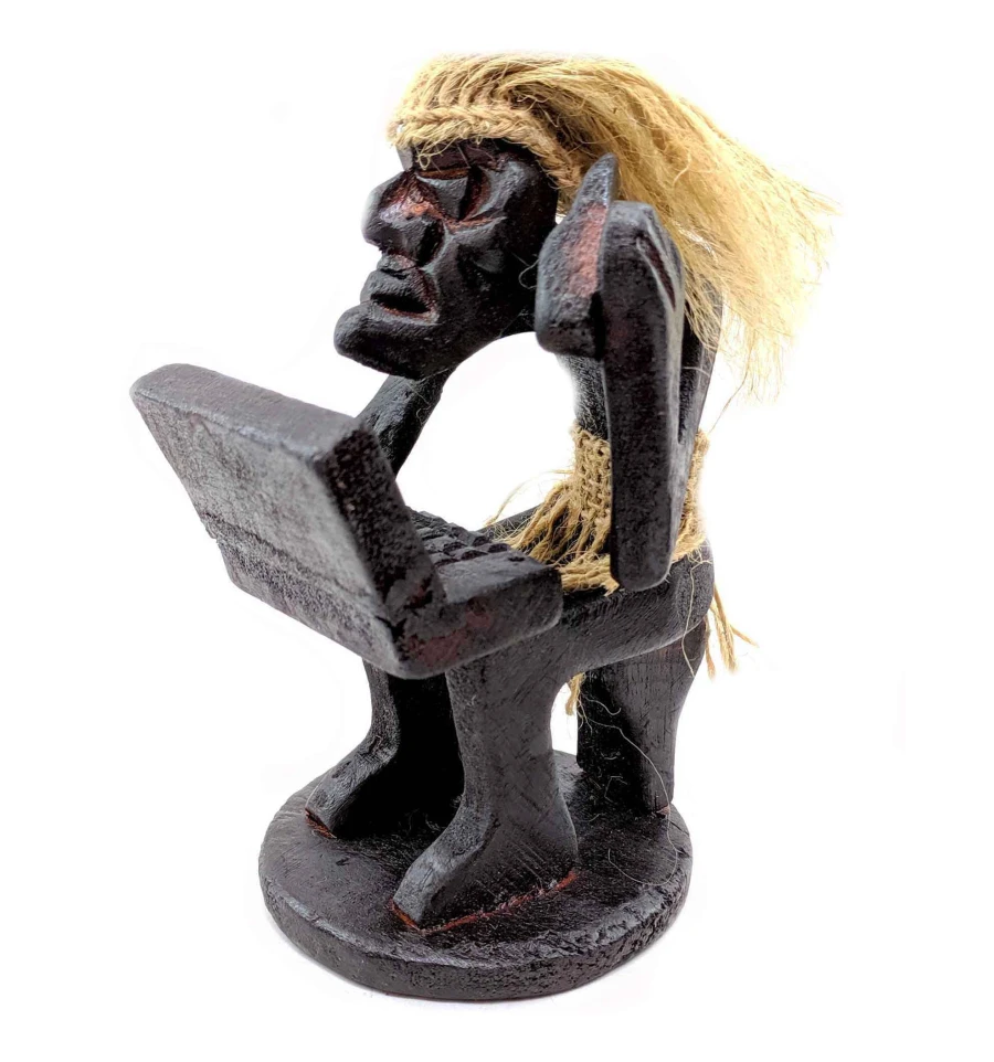 Статуэтка «Папуас програмист с телефоном» дерево (13.5×9×8 см)