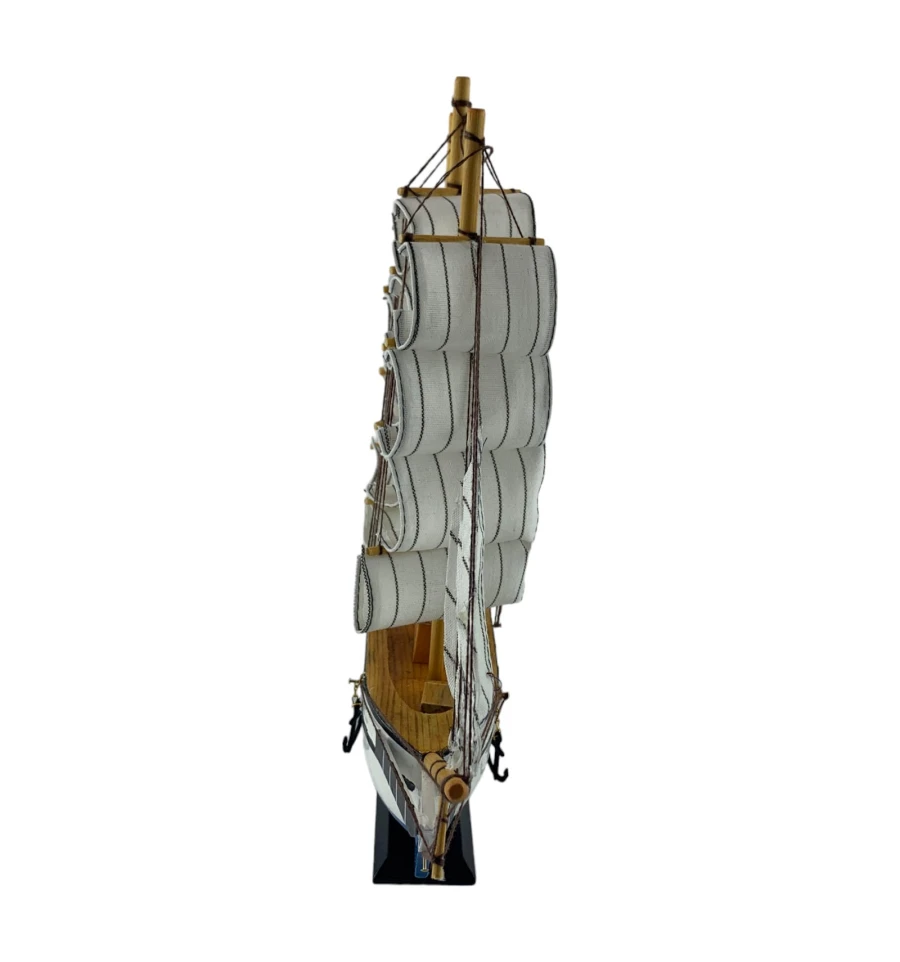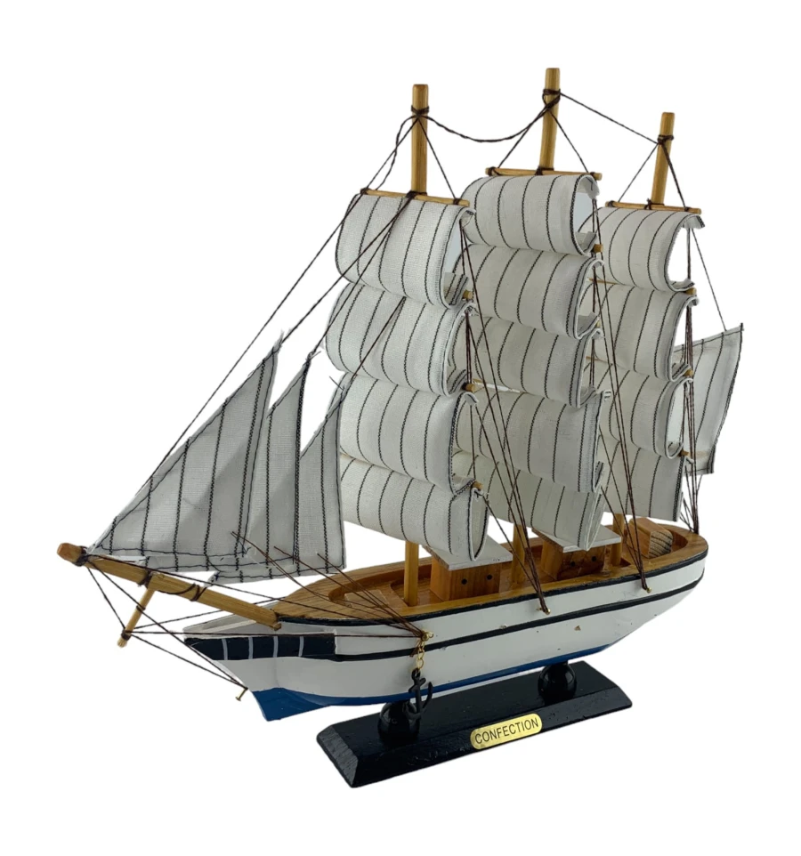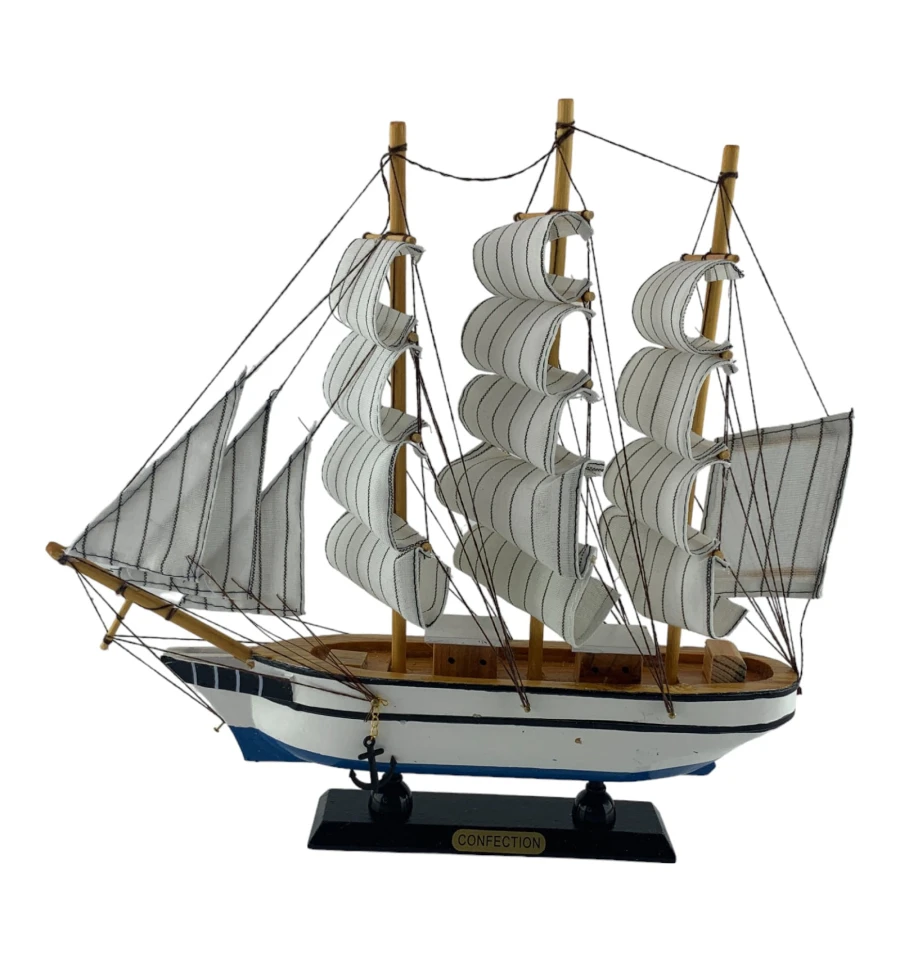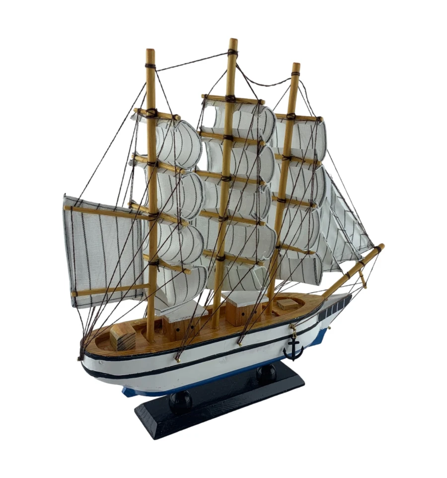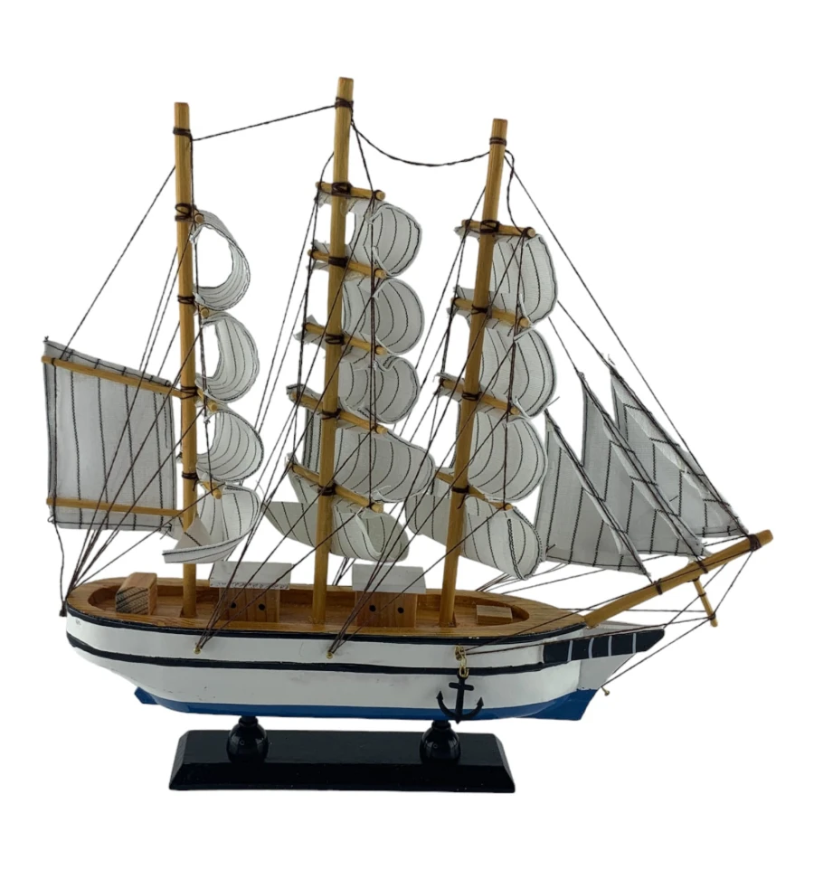 Деревянный парусник на подставке. Этот элегантный парусник - настоящий символ свободы и мечты о далеких морских путешествиях. Белого цвета с черной полосой и голубой снизу , со светлыми парусами призывает к новым горизонтам и приключениям. Парусник на подставке станет не только изысканным элементом вашего интерьера, но и напоминанием о бескрайних океанах и незабываемых моментах. Его компактные размеры делают его идеальным для размещения на столе, полке или в другом уголке вашего дома. Два якоря придают этой композиции дополнительный морской шарм и символизируют стабильность и верность своим идеалам. Этот парусник также может стать замечательным подарком для всех, кто разделяет страсть к морским темам и мечтает о приключениях на широких водах. Он символизирует свободу, мечты и бесконечные возможности. Погрузитесь в мир морской романтики с нашим парусником. Он будет напоминать вам о великих путешествиях и дарить вдохновение каждый день.