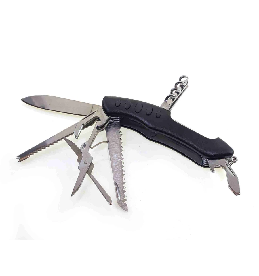 Нож складной с набором инструментов (11 в 1) - универсальный инструмент, который подойдет для любой ситуации. Нож оснащен 11 дополнительными инструментами, такими как пилка, отвертка, открывалка для бутылок и консервных банок, крестовая отвертка и другие. Каждый инструмент сделан из высококачественной нержавеющей стали и легко выдвигается и фиксируется в нужном положении. Ручка ножа имеет эргономичную форму и обтекаемый дизайн для удобного хвата. Нож оснащен блокировкой лезвия для безопасности во время работы. Размер ножа составляет 10х2х2,5 см, что позволяет легко поместить его в карман или на поясной ремень.
