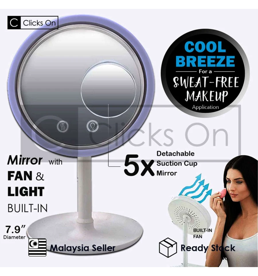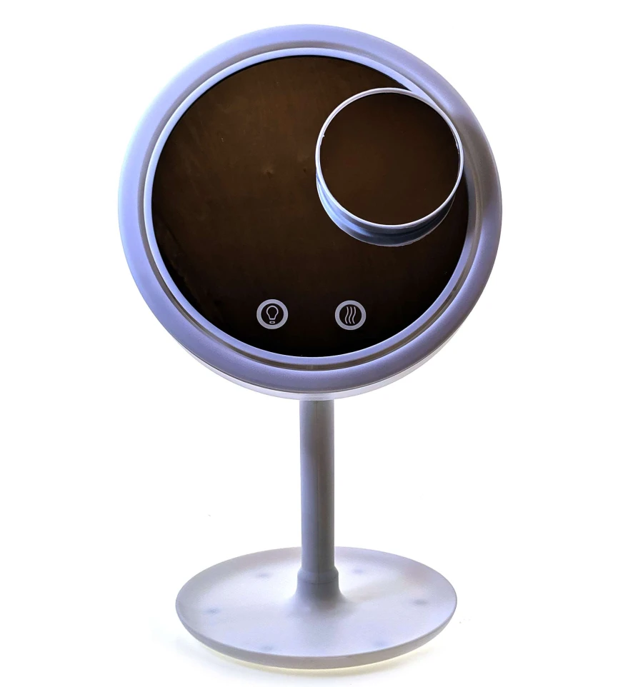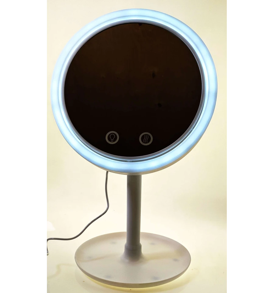 Это удобное и стильное зеркало настольного типа с LED подсветкой и вентилятором. Оно оснащено яркими LED лампами, которые обеспечивают естественное освещение для идеального макияжа, прически или ухода за кожей. Вентилятор помогает охладить ваше лицо и предотвратить блики во время использования зеркала.
