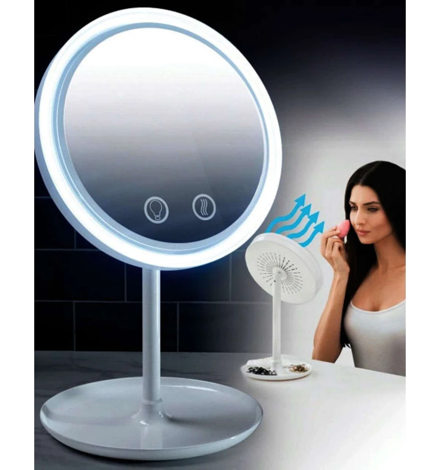 Описание товара "Зеркало настольное с LED подсветкой и вентилятором (35х20х17 см)":