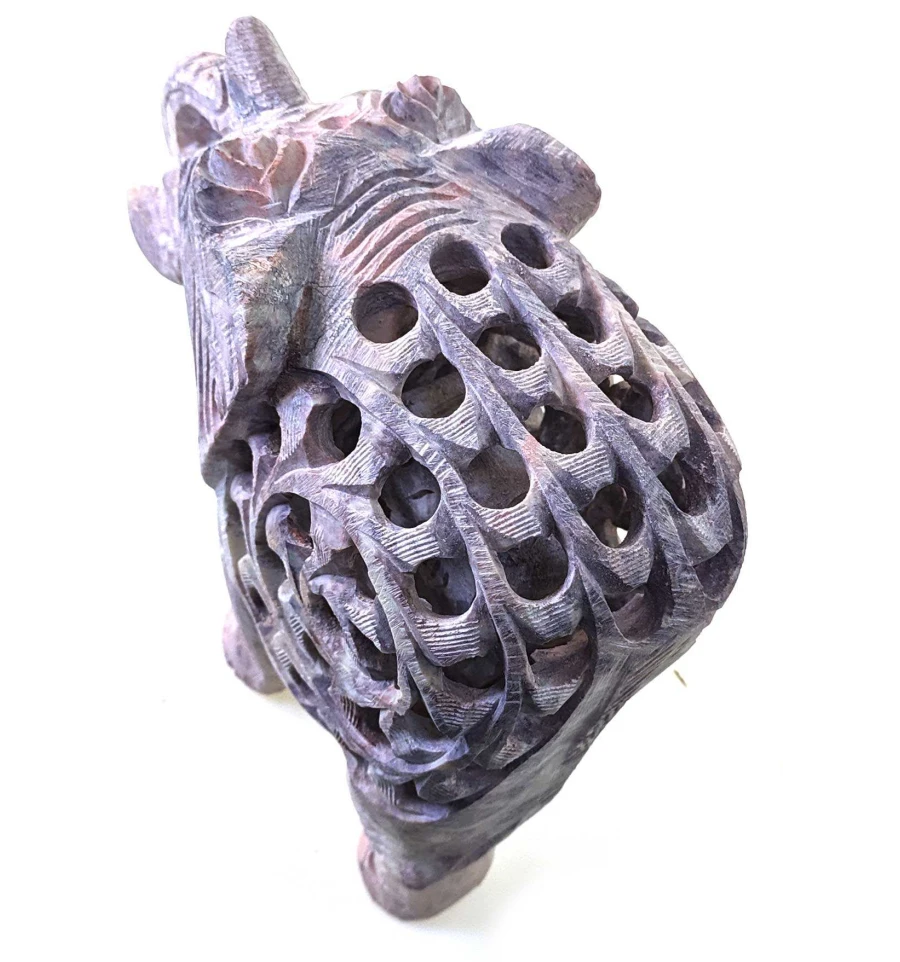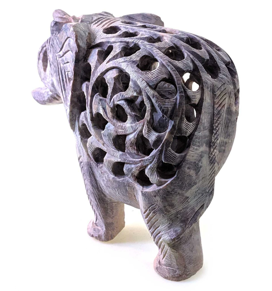 Слон из мыльного камня - это ручная работа мастеров, которые вручную вырезают и отшлифовывают этот красивый и уникальный предмет. Каждый слон имеет свой уникальный рисунок и оттенок, что делает его еще более привлекательным. Размер слона составляет 13х14х7 см, что делает его идеальным для использования в качестве декоративного элемента в интерьере дома или офиса.