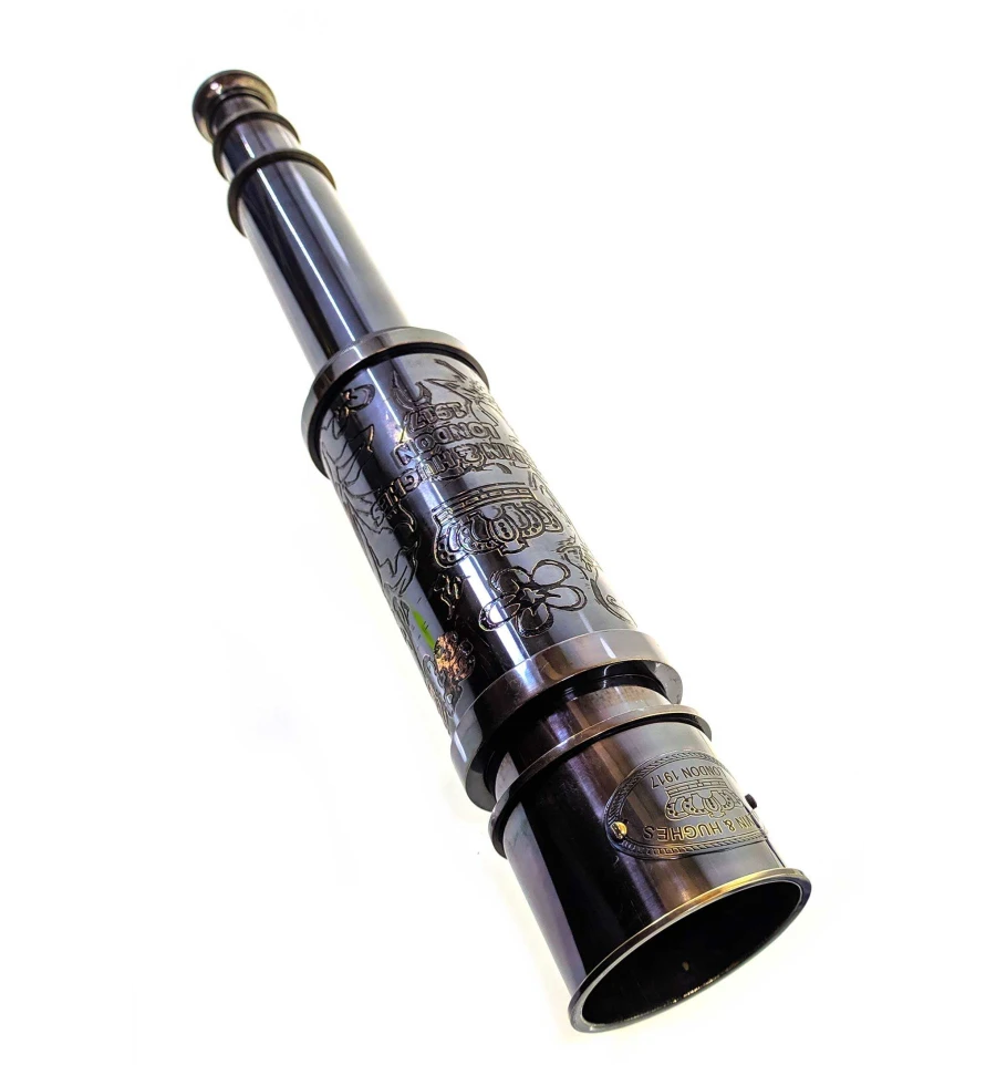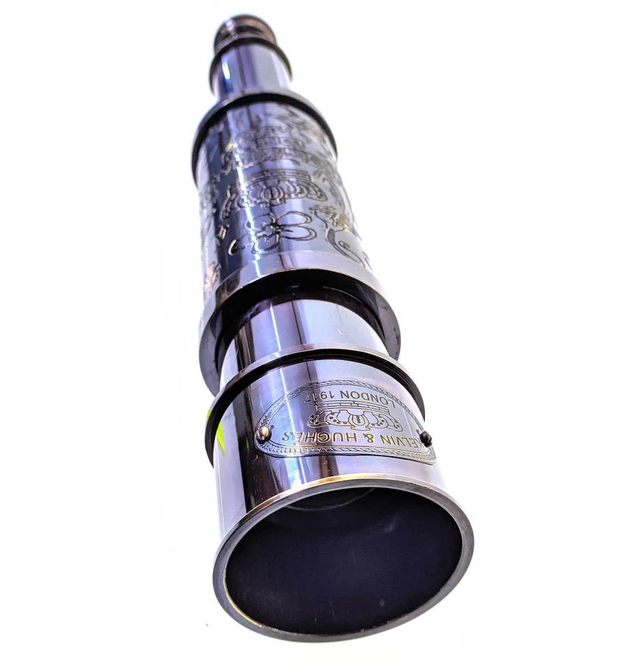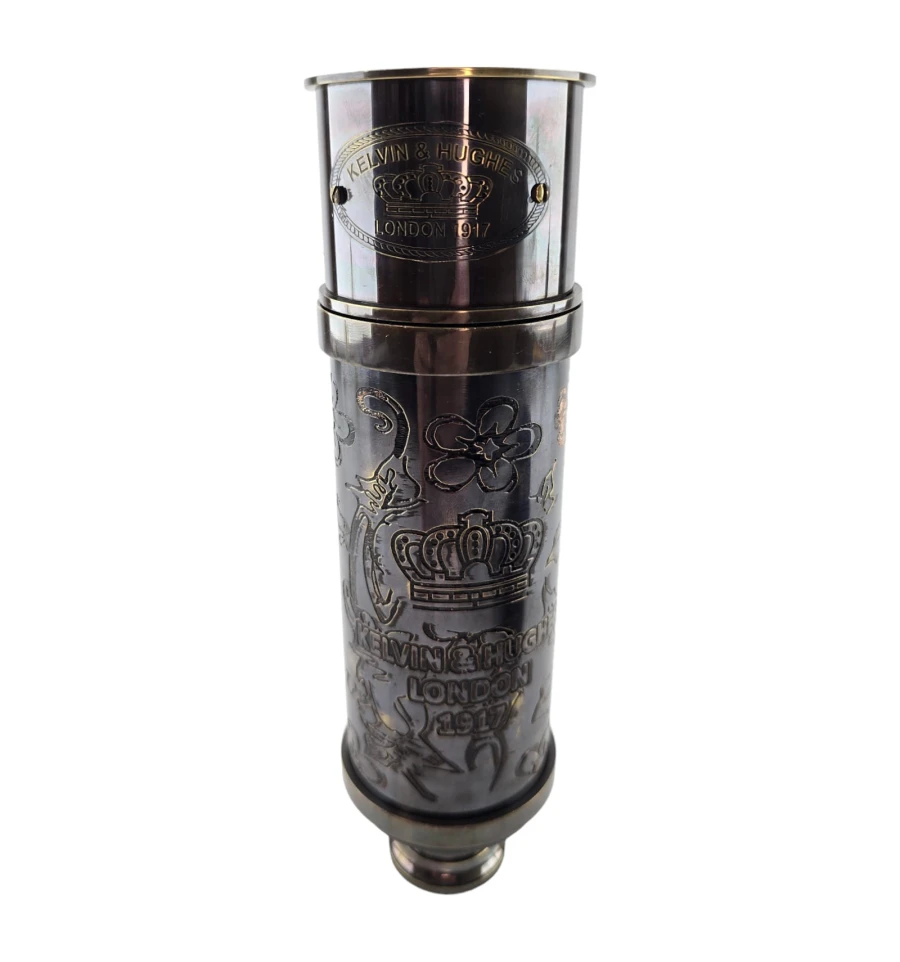 Каждая подзорная труба "Kelvin & Hughes" – это произведение искусства, которое поражает своей красотой и оригинальностью. Украшенная изысканной гравировкой, эта труба превосходит стандарты стиля и изыска, придавая вашему облику изысканное винтажное очарование.