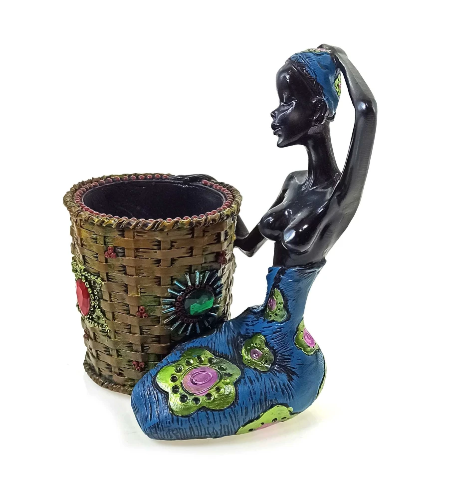 Африканка с корзиной, подставка под ручки (16×12.5×9 см) A