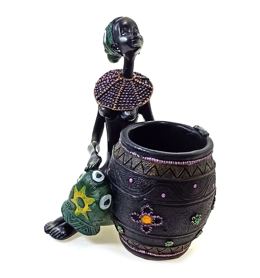 Африканка с корзиной, подставка под ручки (16×12.5×9 см) D