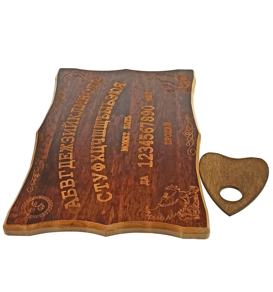 Для создания этой спиритической доски, был использован качественный массив дерева. Она имеет ровную и лакированную поверхность. Классической формой для указателя является вытянутое сердечно. Доска прослужит долго и будет не только приносить ощутимую пользу, но и позволит более полноценно насладиться проведением спиритических сеансов ,ощущая энергию натурального дерева.