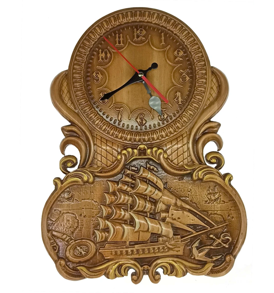 Панно резное «Часы с парусником» купить в интернет магазине подарков ПраздникШоп