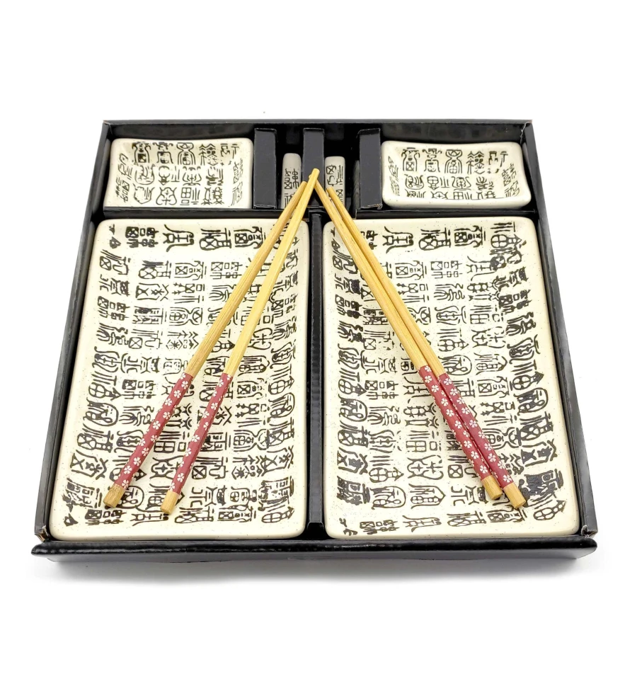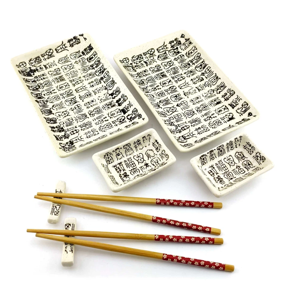 Сервиз для суши «Иероглифы на белом фоне» (2 персоны) (28×28.3×3.5 см) K