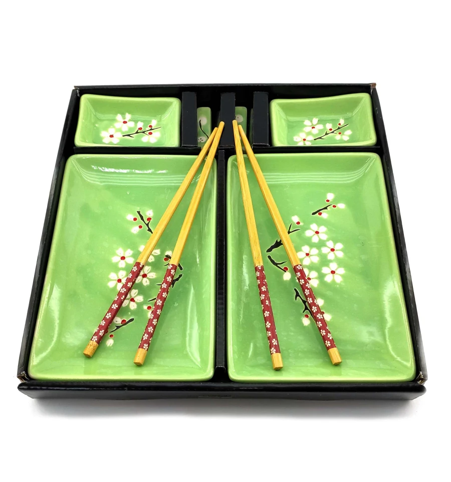 Сервиз для суши «Сакура на зеленом фоне» (2 персоны) (28×28.3×3.5 см)