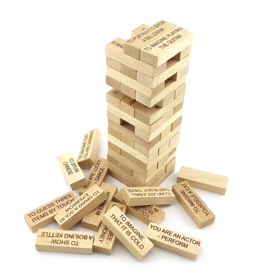 Игра настольная «Дженга с фантами», надписи на английском языке (60 брусков) (28.5×7×7 см) массив дере