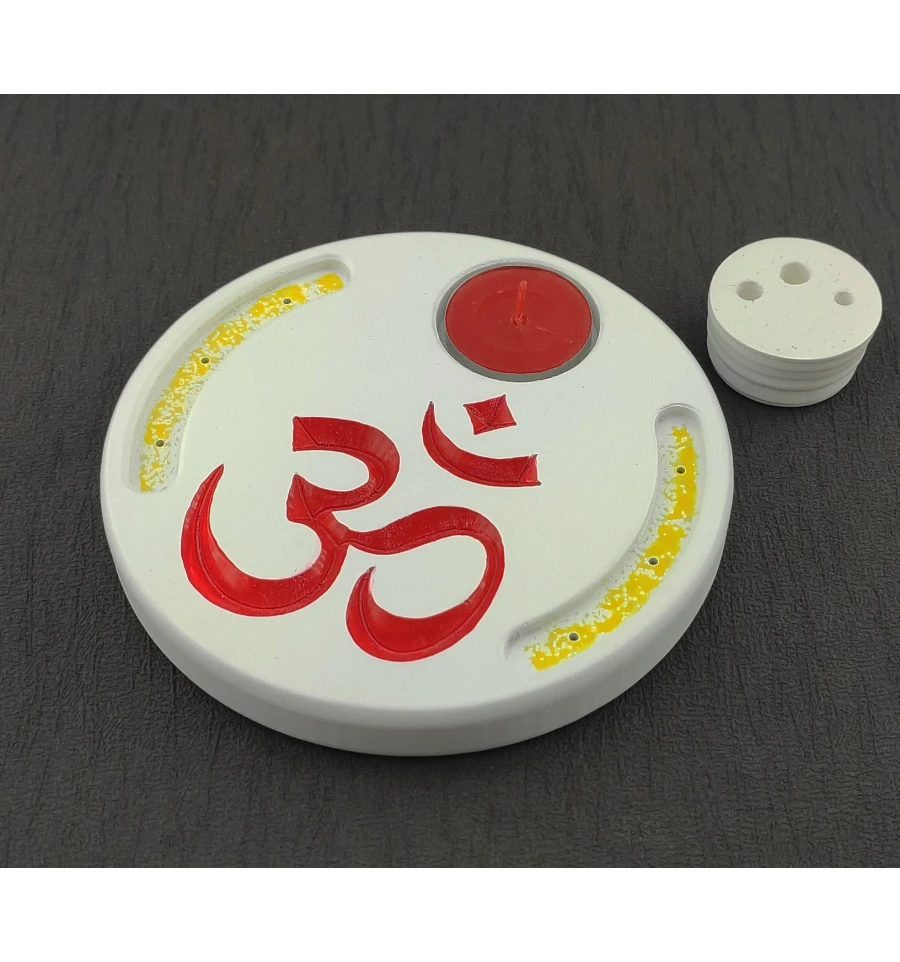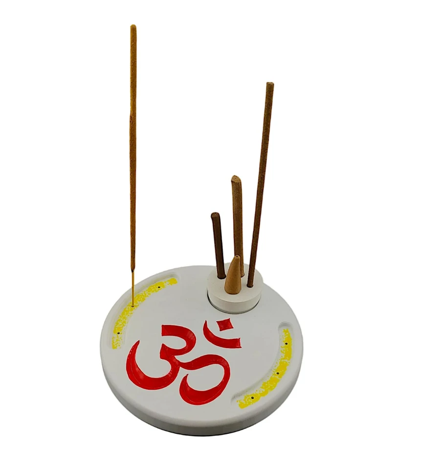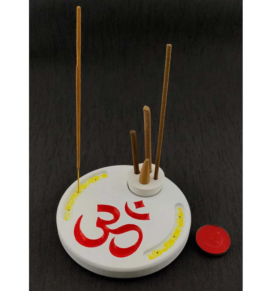 Подставка под благовония белая «Ом» (d14 смh1.8 см) дерево, резная покрыта эмалью и лаком, массив дерева