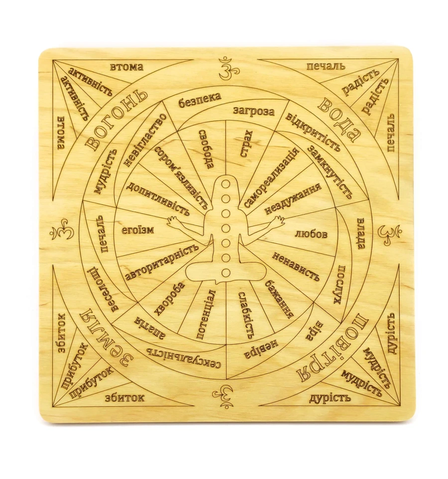 Чакровая таблица на украинском языке (26х26х0,8см).покрыта льняным маслом с пчелиным воском