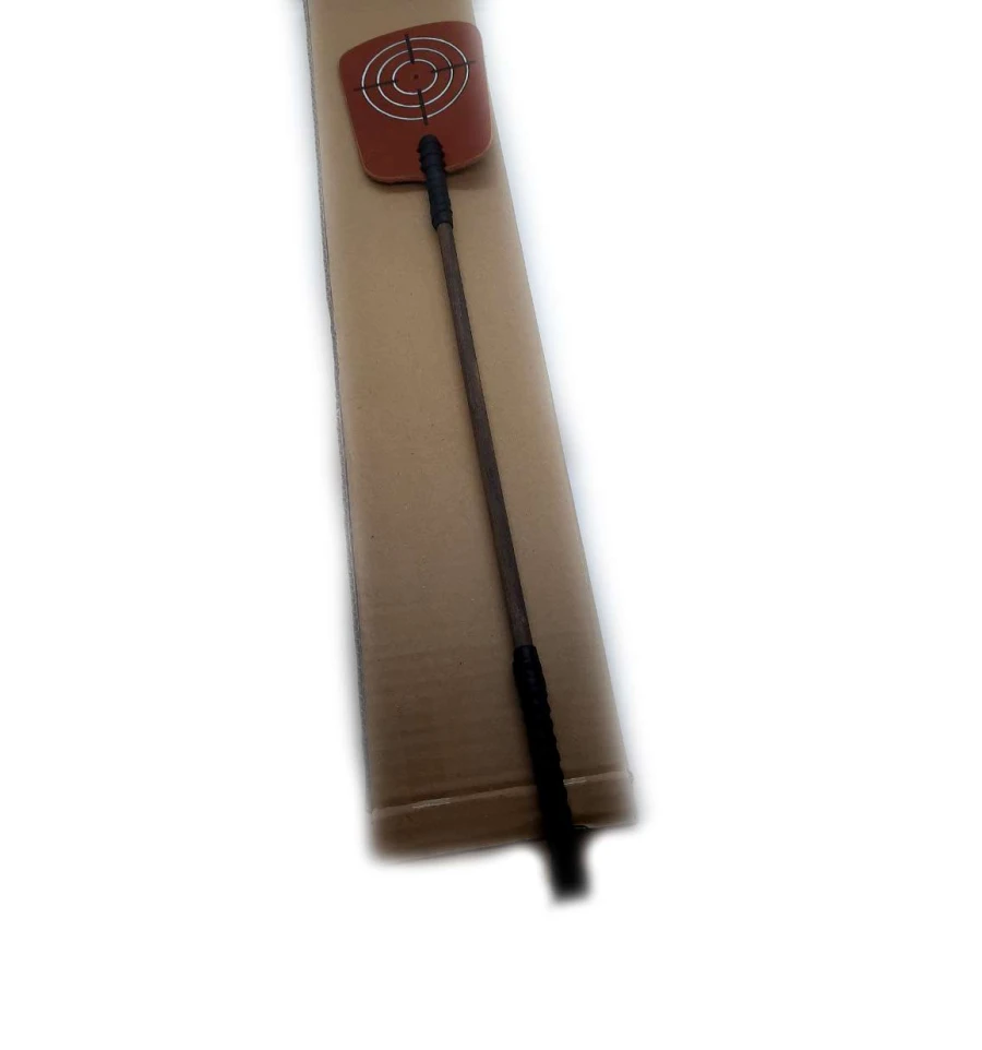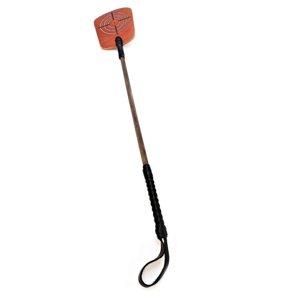 Мухобойка прямоугольной формы с мишенью - это уникальное изделие, выполненное вручную мастерами из натуральных материалов: натуральной кожи и дерева. Ее размеры составляют 61х12х2 см.