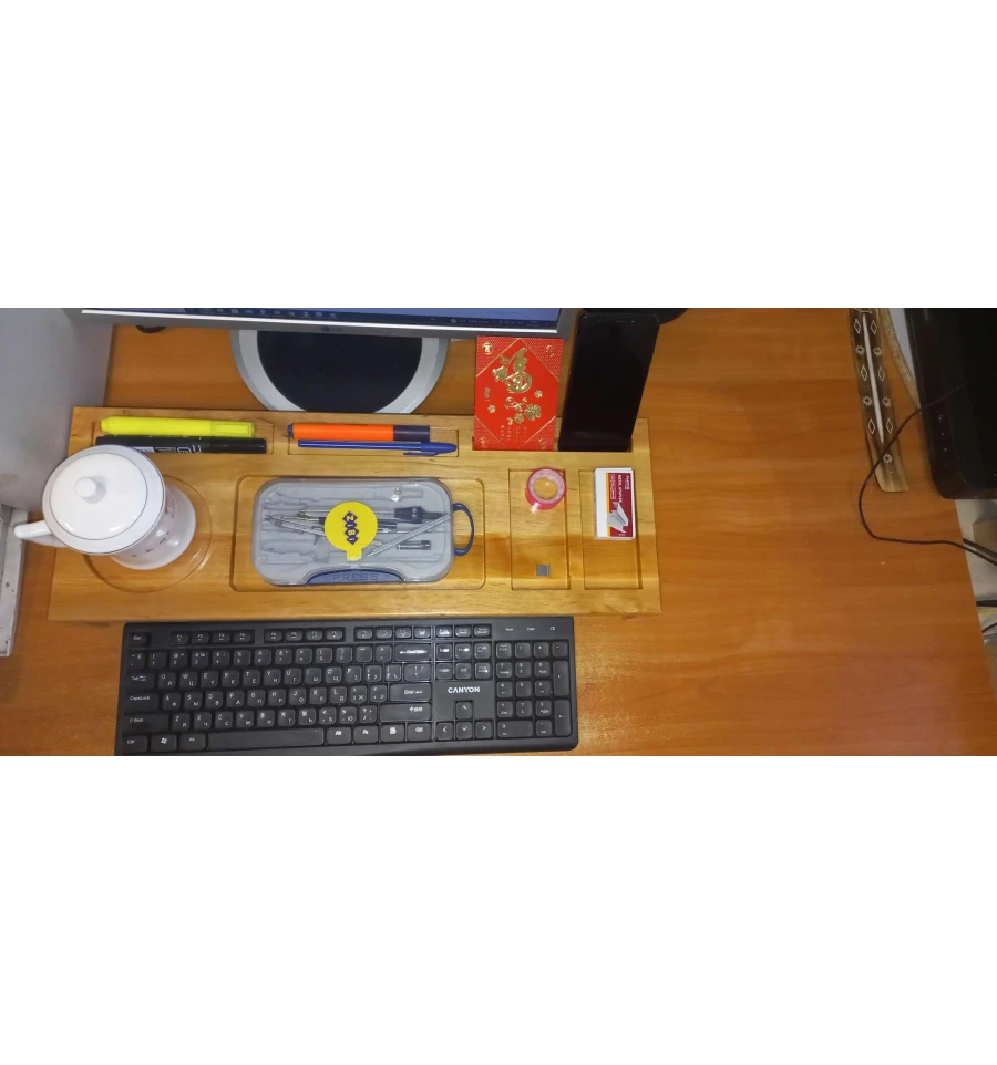 Кроме того, настольный органайзер можно использовать не только в качестве удобного места для хранения предметов, но и как защиту для клавиатуры, когда она не используется. Благодаря своей конструкции он может помочь защитить клавиатуру от пыли и грязи, что продлит ее срок службы и снизит риск поломки. Таким образом, наш настольный органайзер не только позволяет организовать рабочее пространство, но и обеспечивает дополнительную защиту вашей техники.
