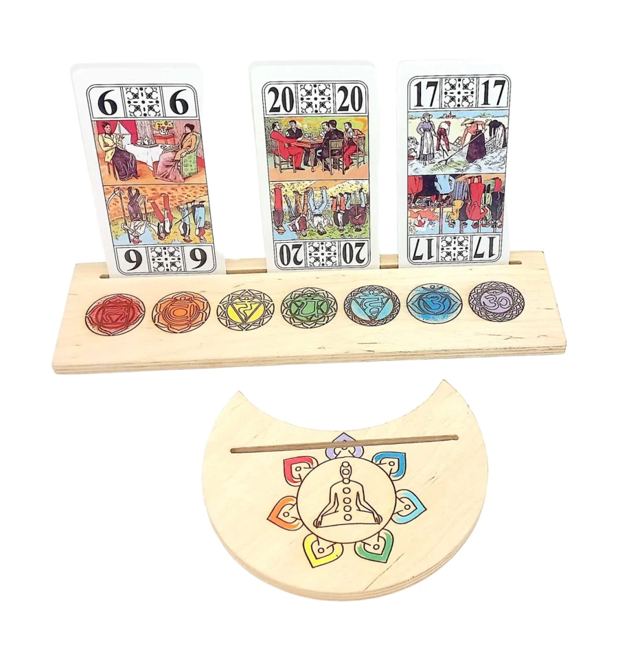 Комплект деревянных подставок под карты ТАРО, который мы предлагаем, содержит две разных подставки: одну для размещения одной карты ТАРО, а вторую для размещения трех карт ТАРО.