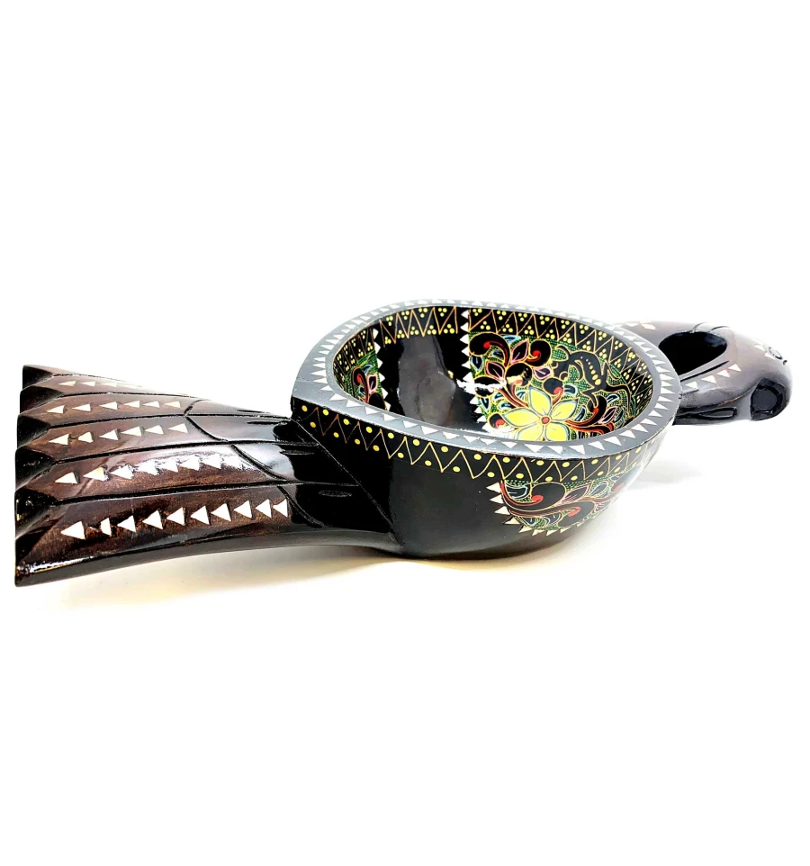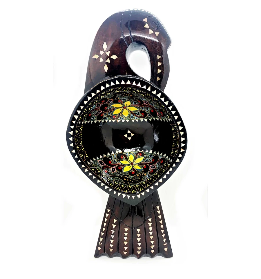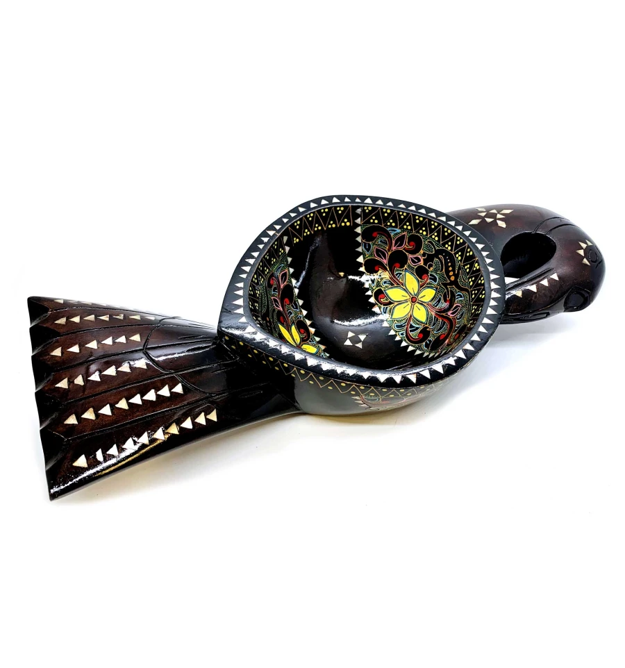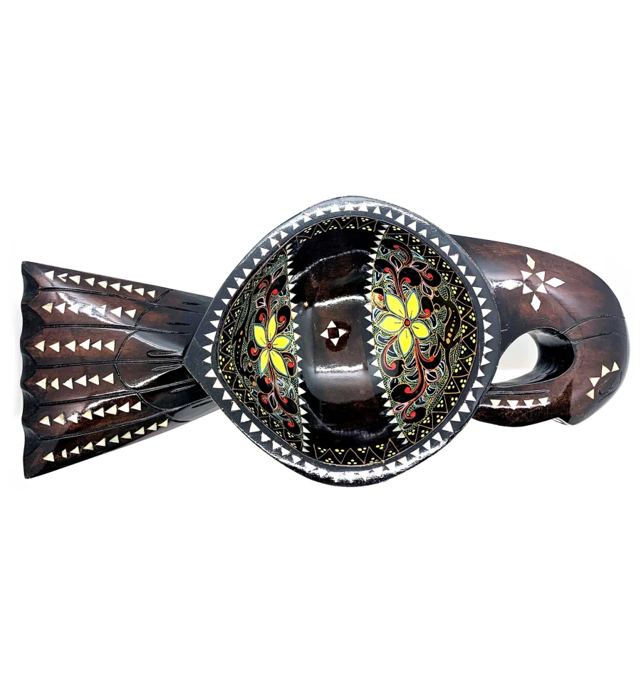 Представляем вам уникальное блюдо для фруктов, "Птица", изготовленного из цельного дерева и инкрустированного перламутром. Его размеры составляют 34х16х7 см, а его коричневый цвет выглядит очень стильно и элегантно. Блюдо "Птица", выполнено вручную, на острове Ломбок, станет настоящим украшением вашего дома и привнесёт в ваш интерьер неповторимую атмосферу тепла и уюта. Желтые цветы, расписанные вручную, добавят ярких красок в вашу жизнь.