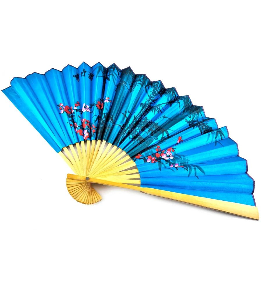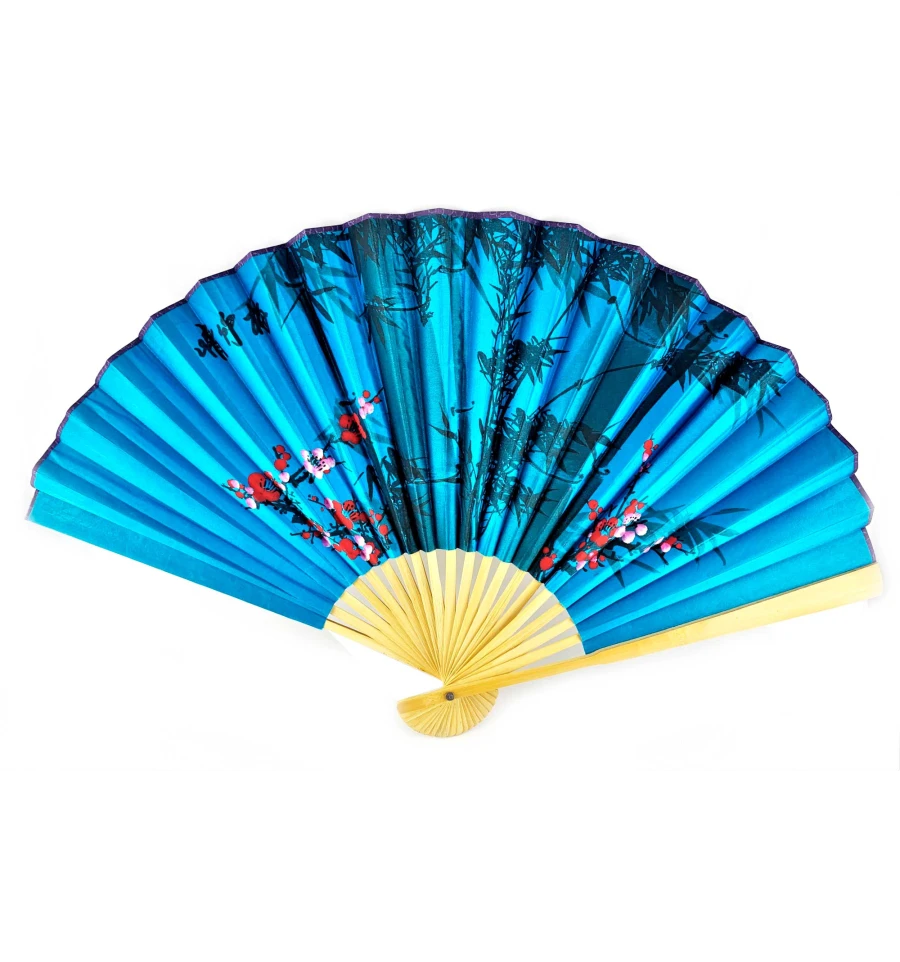 Изображение "Сакура и бамбук на синем фоне" на веере передает атмосферу красоты, спокойствия и гармонии. Синий фон символизирует глубину, стабильность и мудрость, а сакура и бамбук являются символами японской культуры, олицетворяющими красоту, силу и долголетие.
