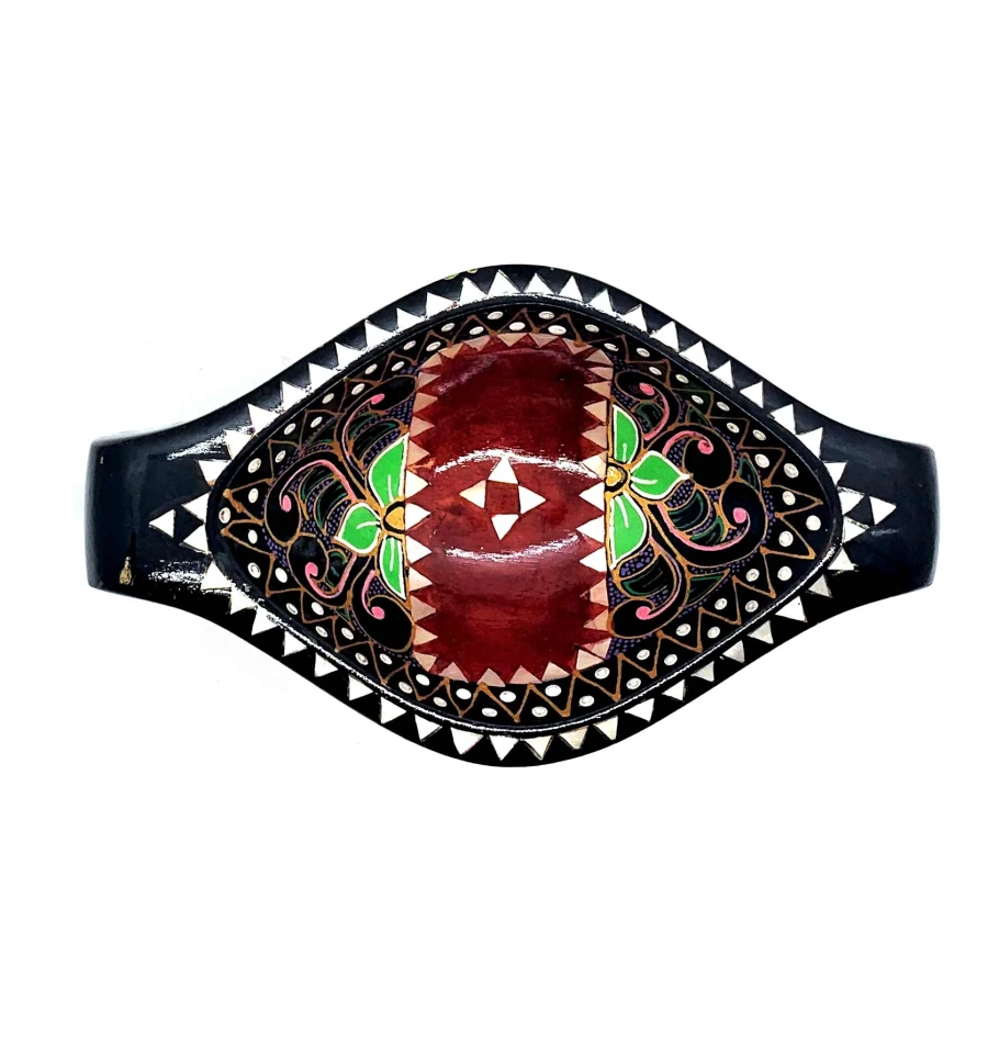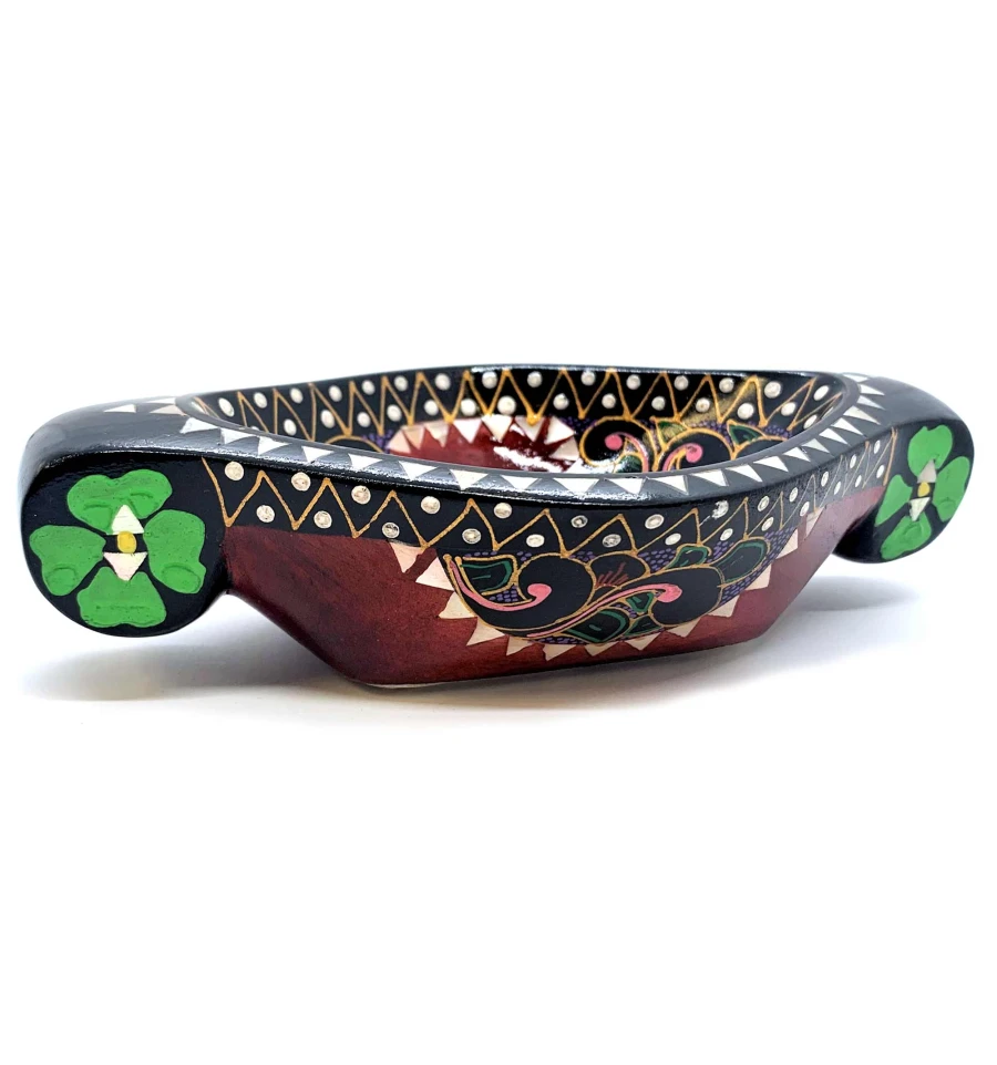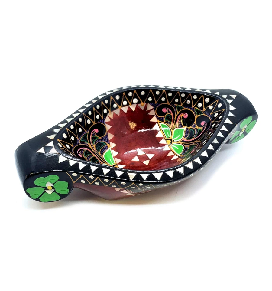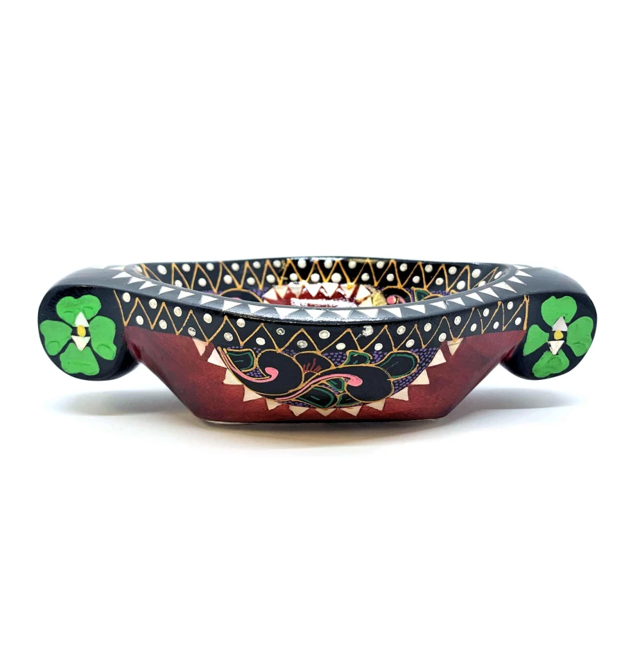 Это восхитительное блюдо для фруктов выполнено вручную в Индонезии на острове Ломбок из цельного дерева и инкрустировано перламутром. Оно имеет яркий красный цвет и украшено росписью вручную с изображением красивых цветов. Размер этого блюда составляет 16 х 10 х 4.5 см, что делает его идеальным для сервировки фруктов и других лакомств. Это красивое и функциональное изделие станет прекрасным дополнением к вашему декору и прекрасным подарком для любителей уникальных предметов.