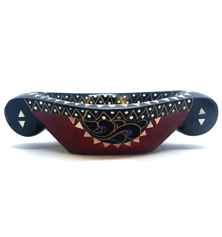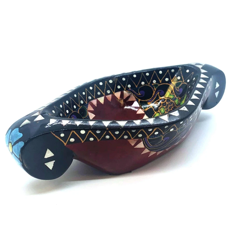 Это блюдо изготовлено из высококачественного цельного дерева и украшено великолепной инкрустацией из перламутра. Красный цвет придает ему особую элегантность и притягательность. На поверхности блюда вручную нанесена нежная и яркая роспись с изображением прекрасных цветов. Каждый штрих и деталь выполнены с большим вниманием к деталям, чтобы создать великолепный визуальный эффект.