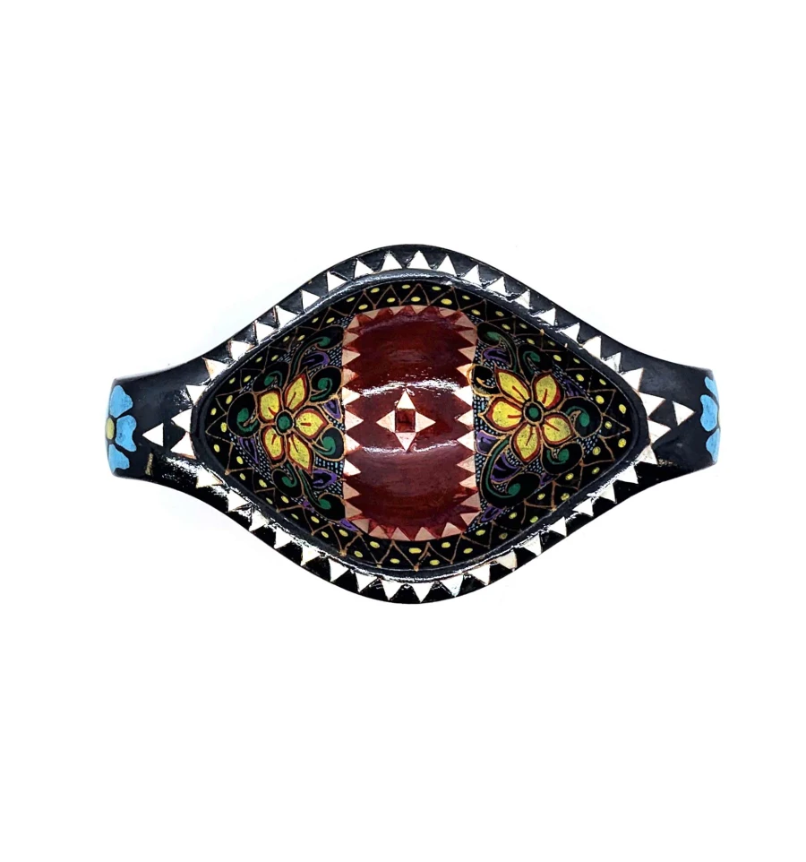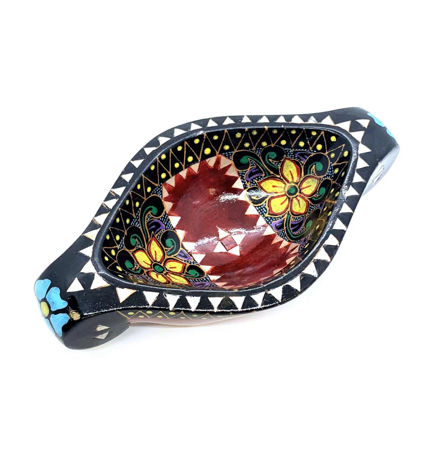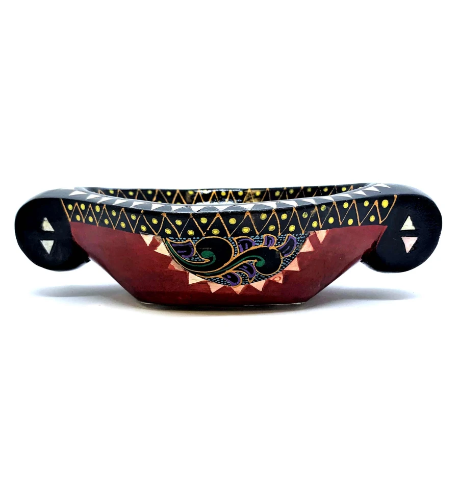Это блюдо изготовлено из высококачественного цельного дерева и украшено великолепной инкрустацией из перламутра. Красный цвет придает ему особую элегантность и притягательность. На поверхности блюда вручную нанесена нежная и яркая роспись с изображением прекрасных цветов. Каждый штрих и деталь выполнены с большим вниманием к деталям, чтобы создать великолепный визуальный эффект.