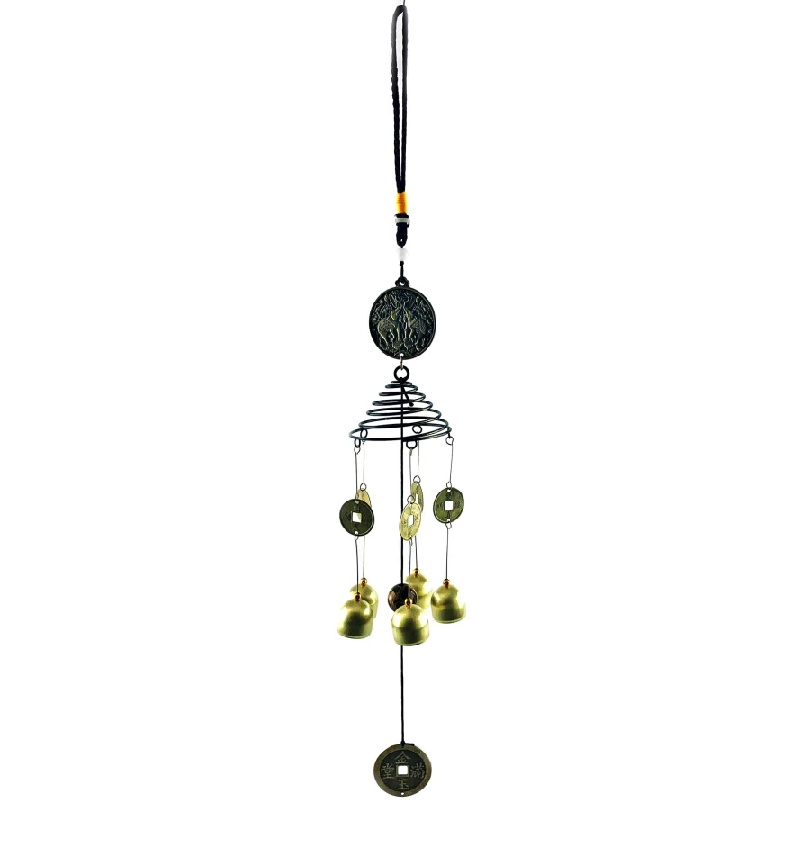 Нежные колокольчики диаметром 25 мм, выполненные в золотистом цвете, добавляют в изделие прекрасный звон, который создает атмосферу покоя и гармонии. Нижняя монетка "Счастья" с диаметром 50 мм становится завершающим штрихом этого украшения, привлекая внимание и принося радость своим владельцам.