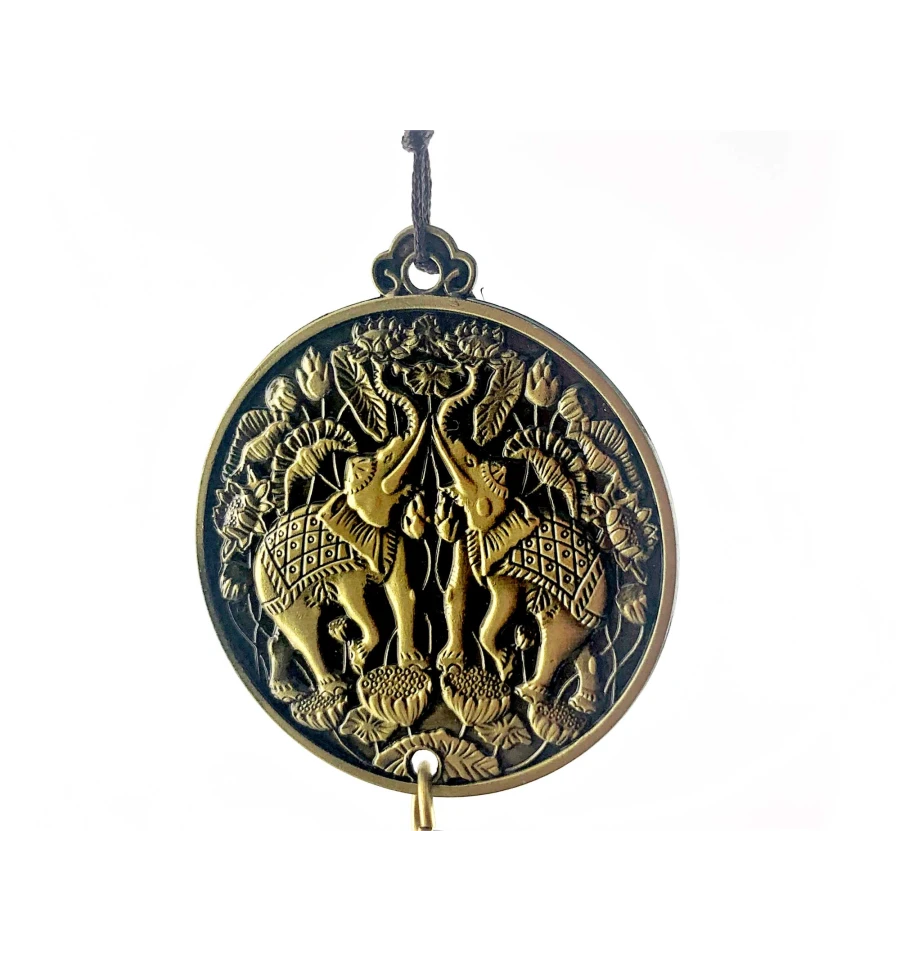 Музыка ветра "Слоны" - это великолепное украшение, которое придаст вашему дому, саду, офису или кафе особый шарм. Это уникальное изделие украшено медальоном, изображением двух слонов, с обеих сторон.Изображения различны, размером 50 мм, символизирующими мудрость, силу и удачу.