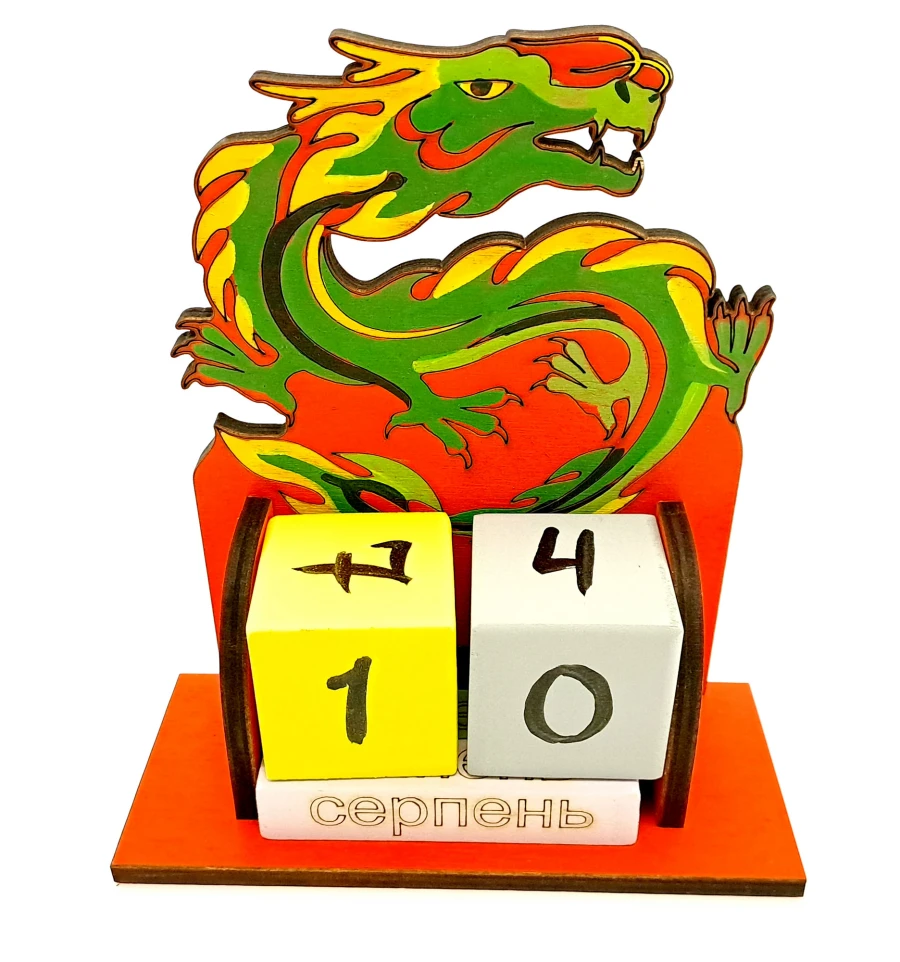 Календарь из дерева;Китайский зеленый дракон — великолепного сочетания