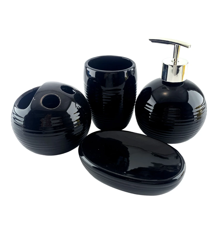 Керамический набор для ванной в черном цвете - это идеальное решение для придания вашей ванной комнате стиля и функциональности.
