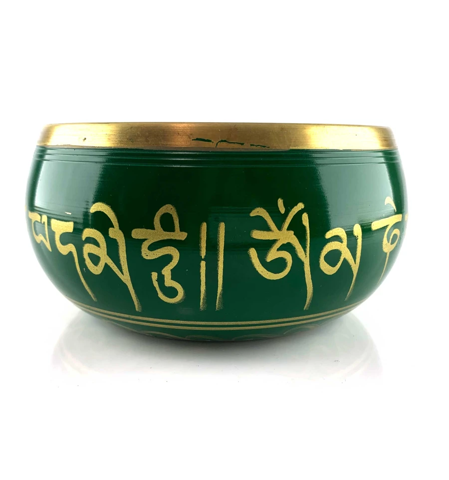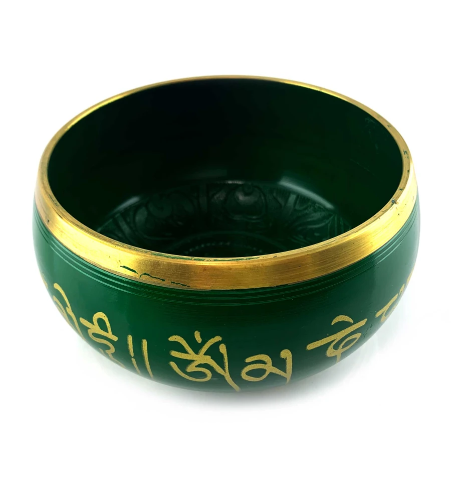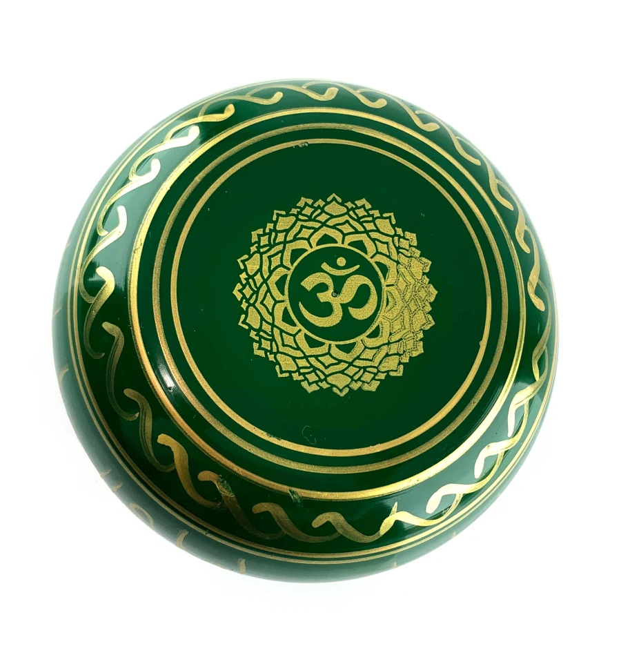 Углубитесь в мир медитации и покоя с нашей бронзовой зеленой поющей чашей, украшенной изящным изображением Будды внутри и золотистыми индийскими надписями снаружи. Эта удивительная чаша не только создает гармоничные и умиротворяющие звуки, но и является настоящим произведением искусства, которое наполняет пространство вокруг вас духовной энергией и позитивом.