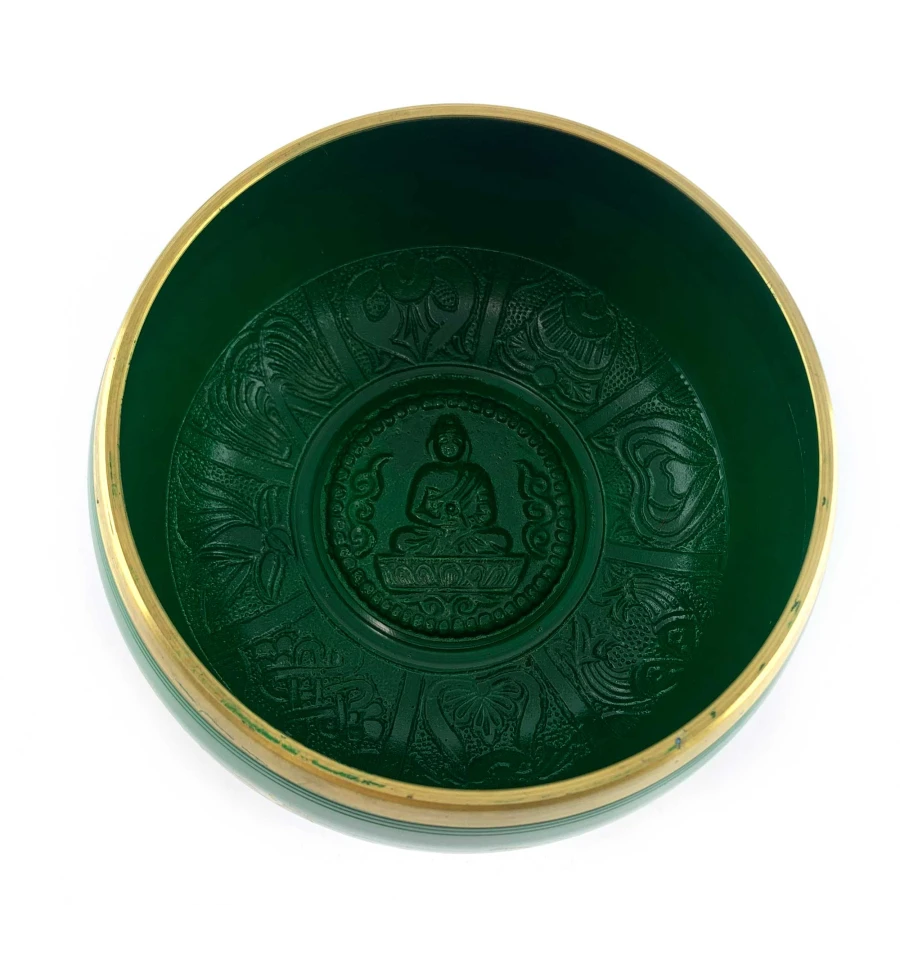 Поющая чаша бронзовая " Будда" зеленая (16.5х 8.7х 15.8 см)