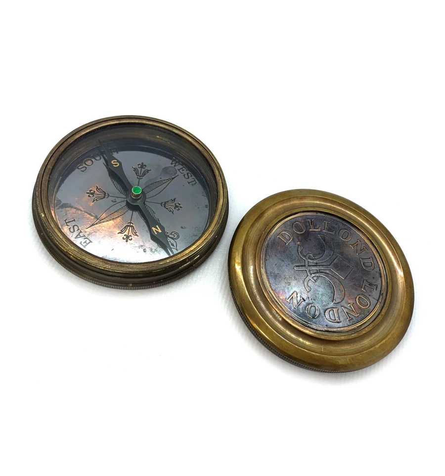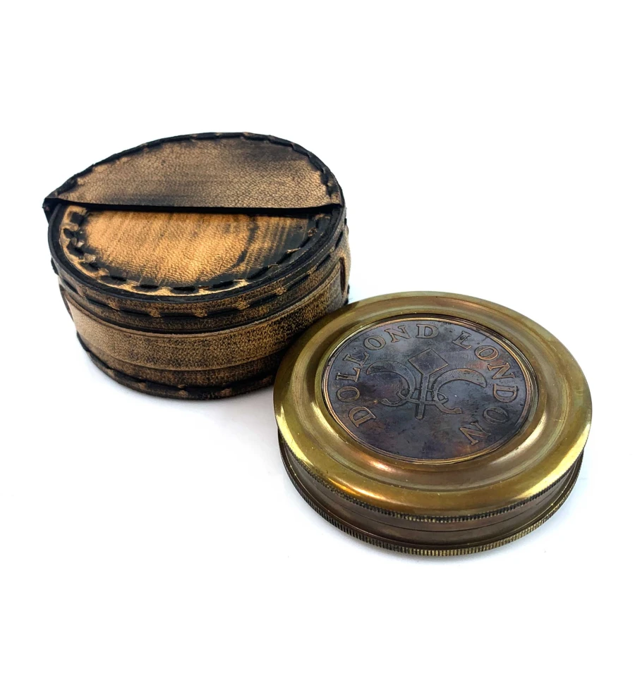 Компас бронзовый в кожаном футляре" Dollond London" ( 8,7 х3,5см)