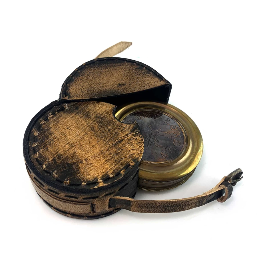 Позвольте этому компасу сопровождать вас в ваших приключениях и делать каждое путешествие незабвенным. Добавьте немного стиля к своей жизни с компасом в кожаном футляре "Dollond London".