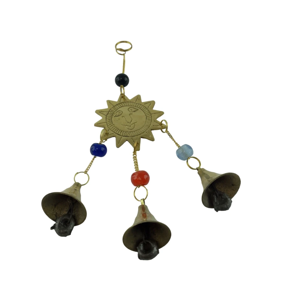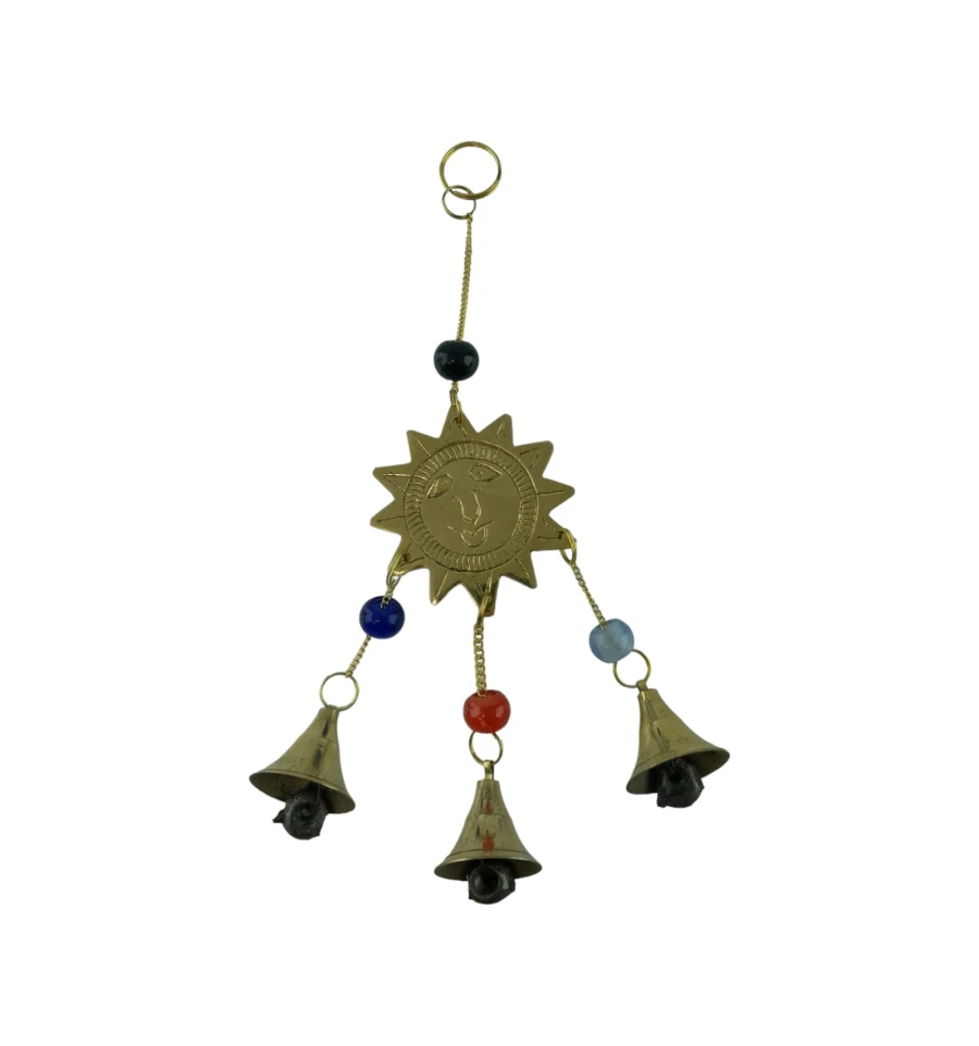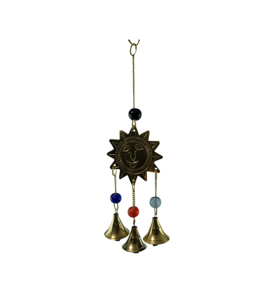 Привнесите волшебство и тепло в ваш дом, сад или офис с нашей красивой подвеской "Индийское Солнышко". Это оригинальное бронзовое украшение, которое приковывает внимание своим уникальным дизайном и приятным звучанием колокольчиков.